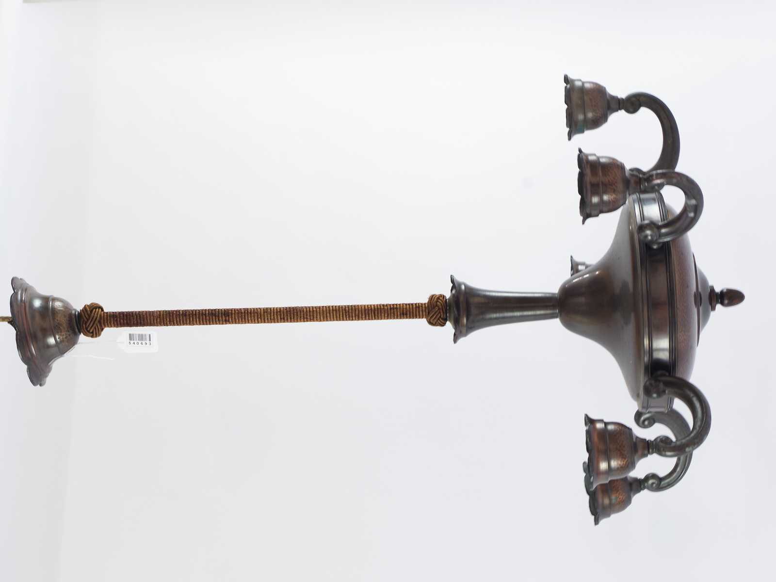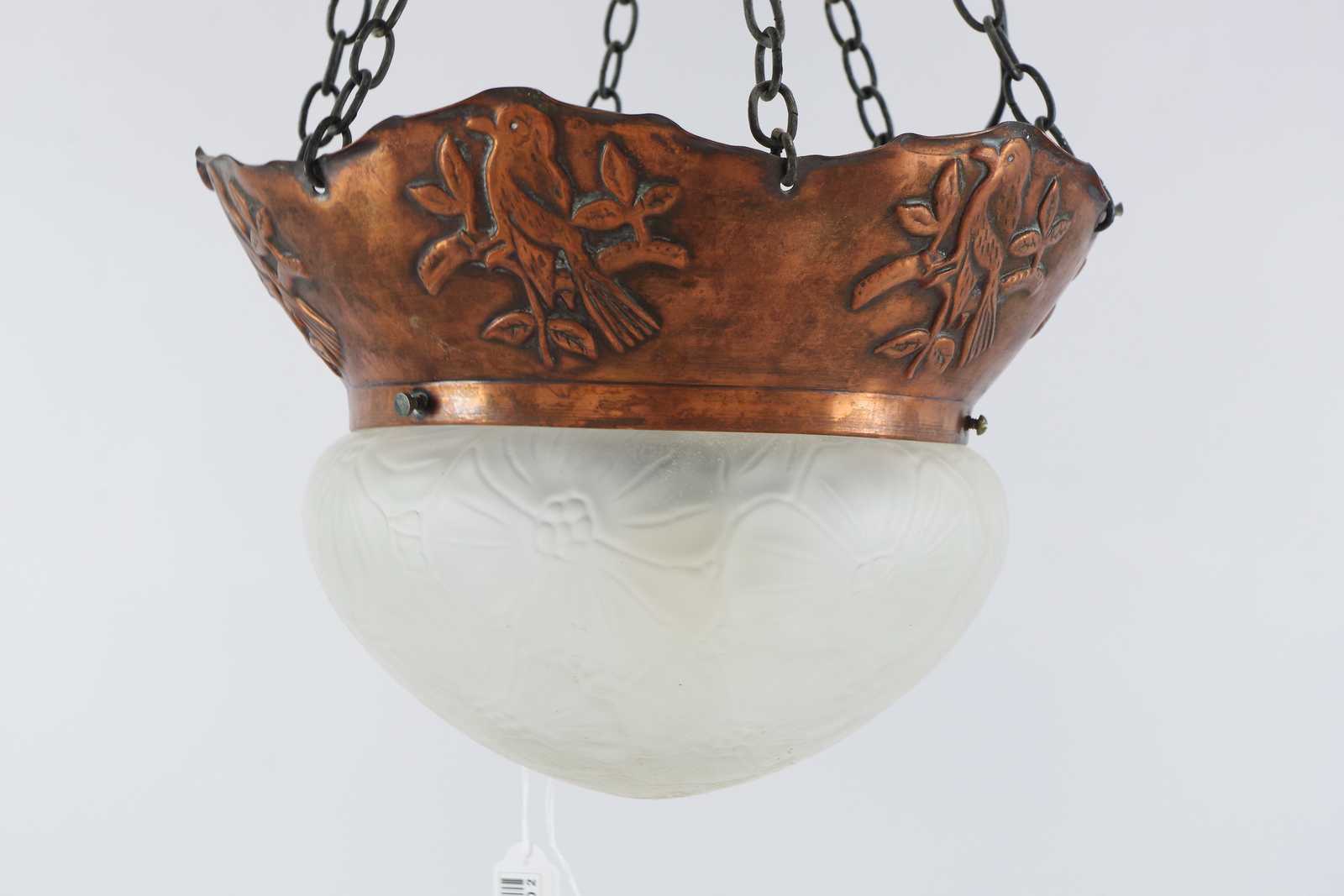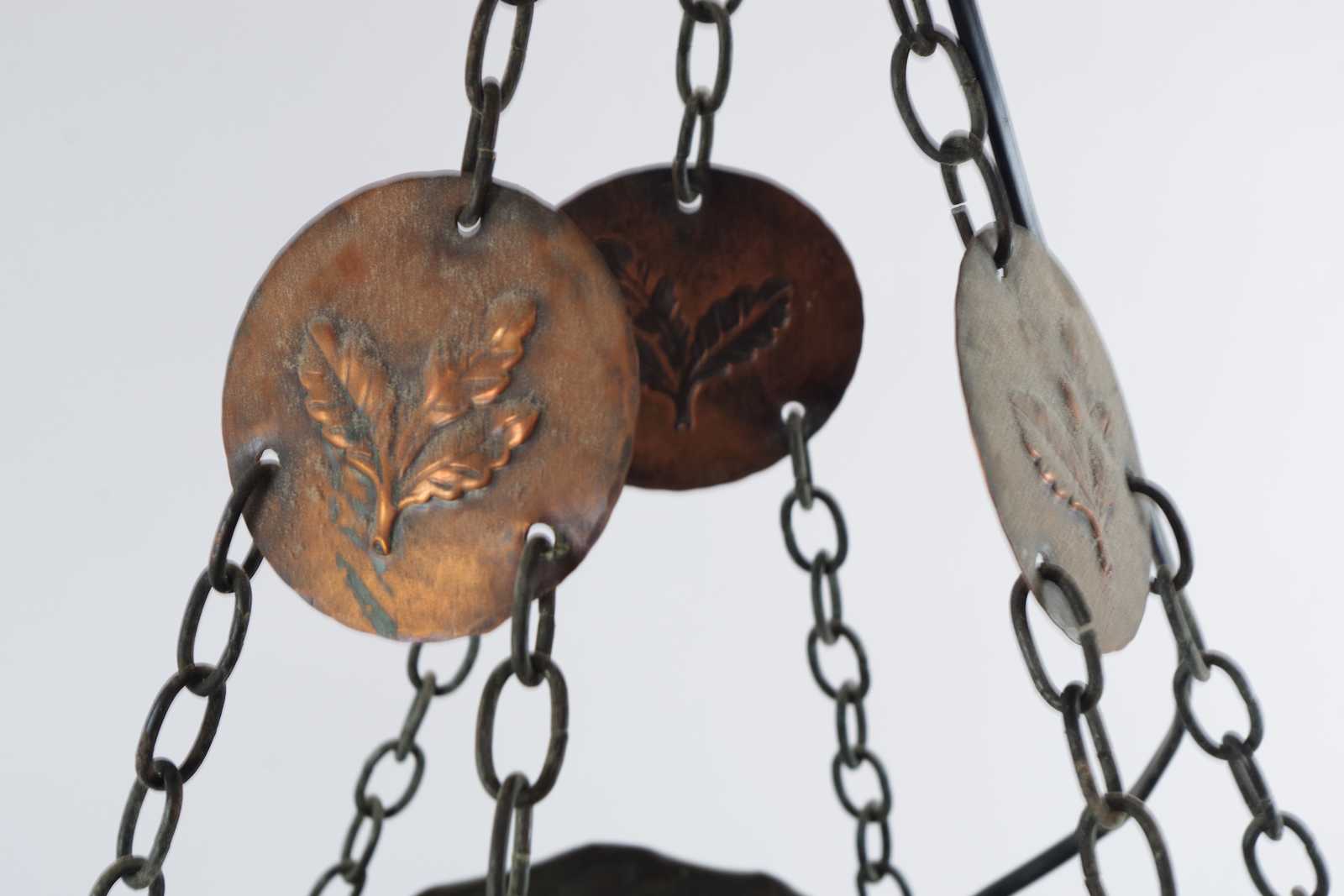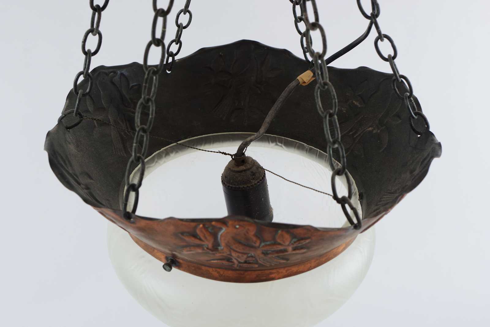Bilder TAKLAMPA i koppar & glas, tidigt 1900 tal. D:30cm