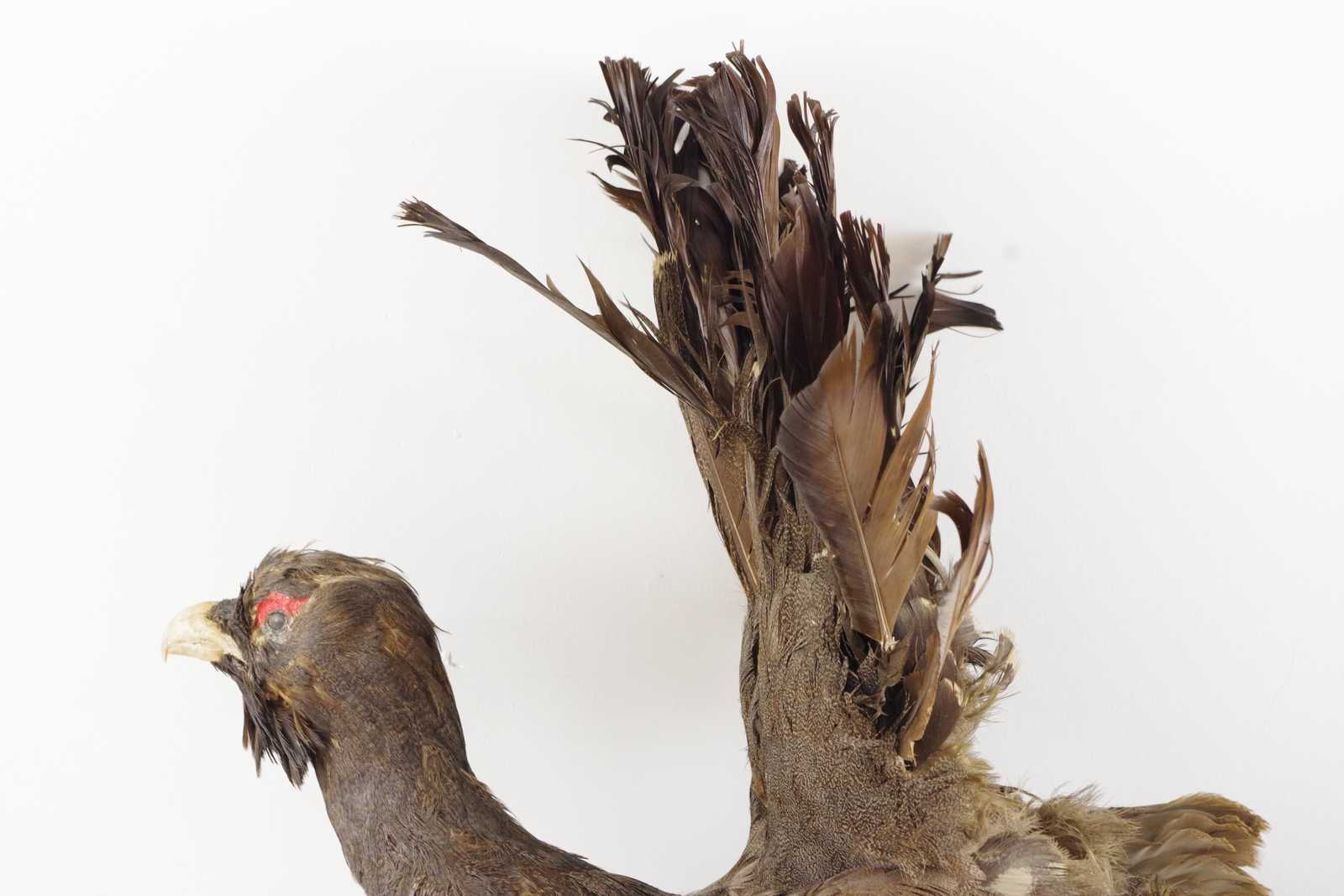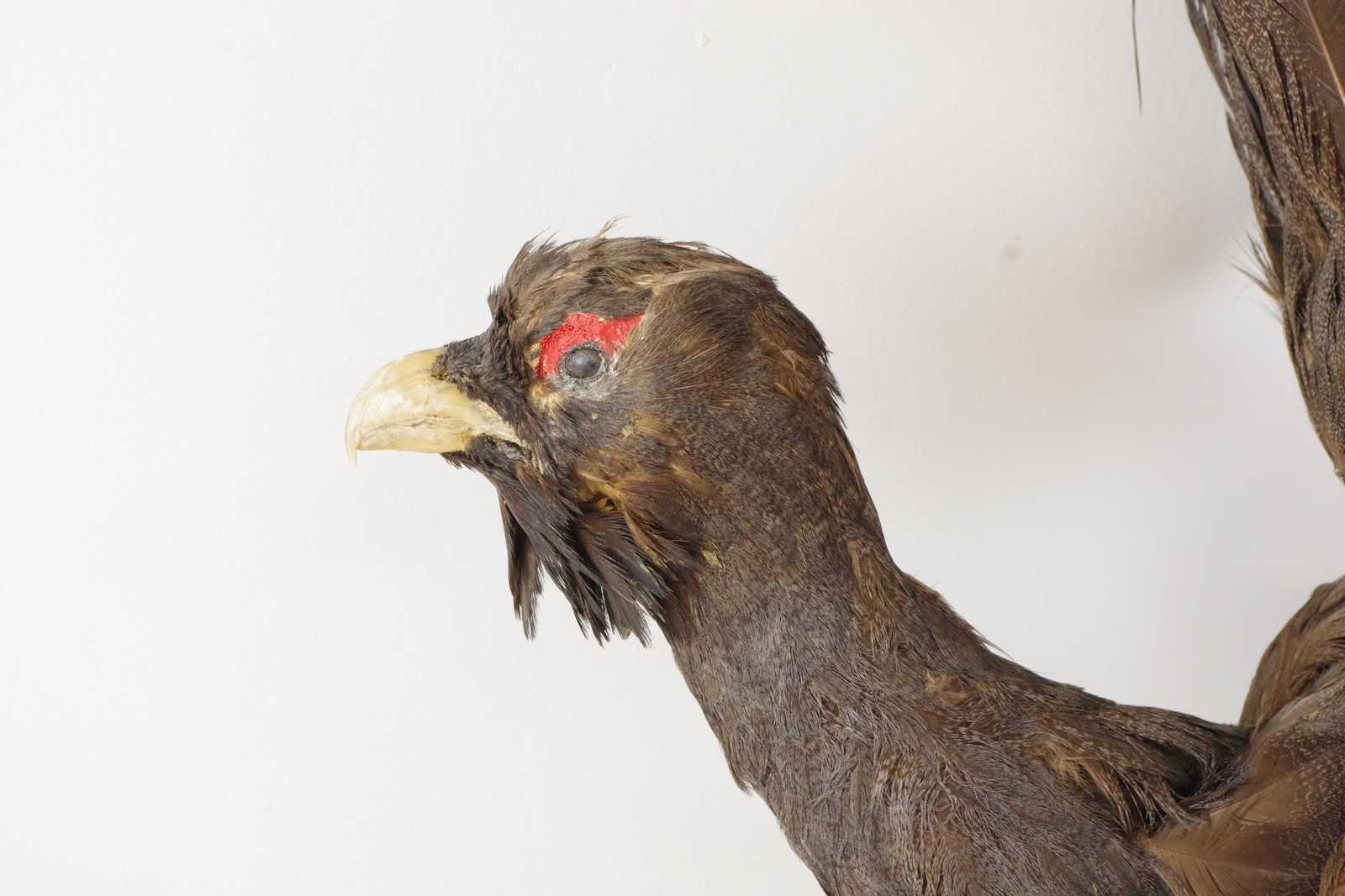 Bilder UPPSTOPPAD FÅGEL Tjäder monterad på gren, åldersslitage
