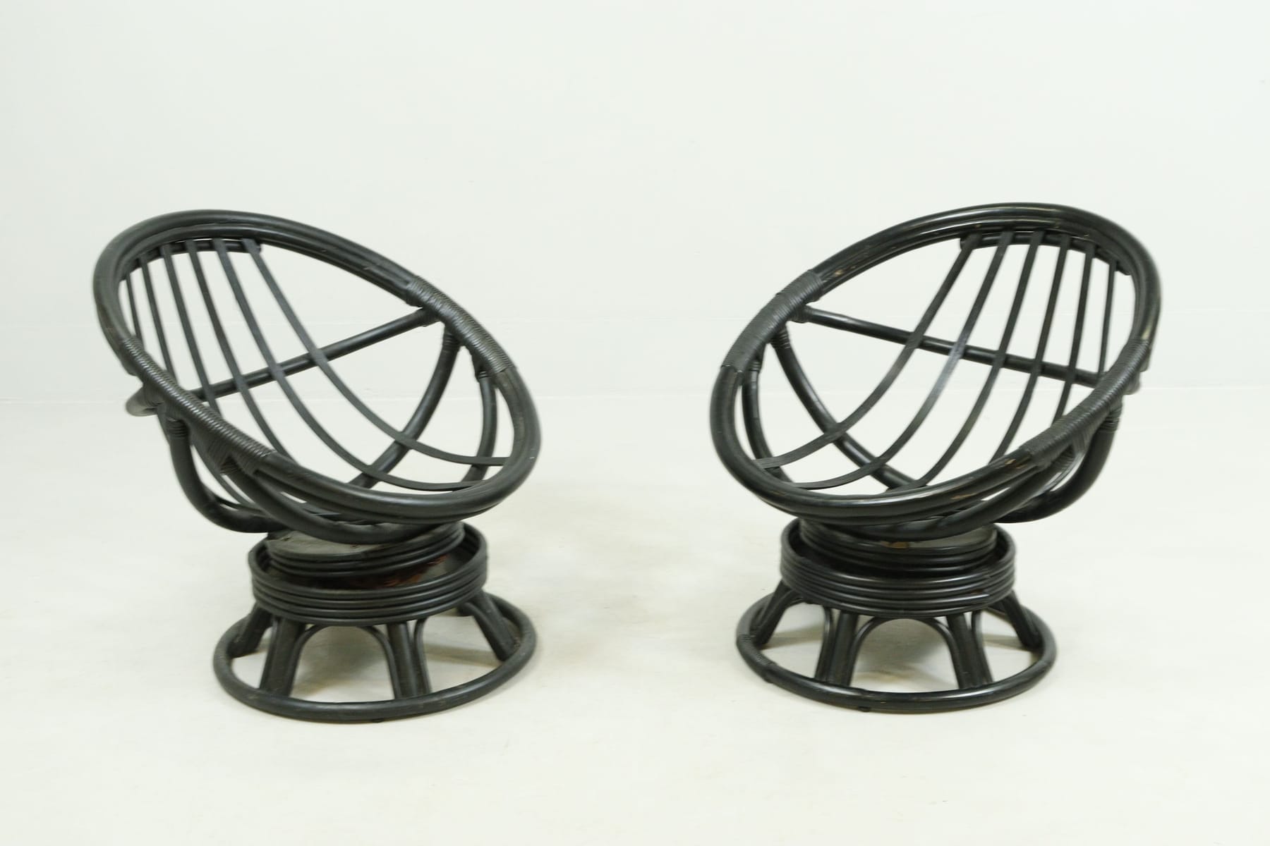 Bilder Fåtöljer, 1 par, bambu, svart, snurr- och gungfunktion