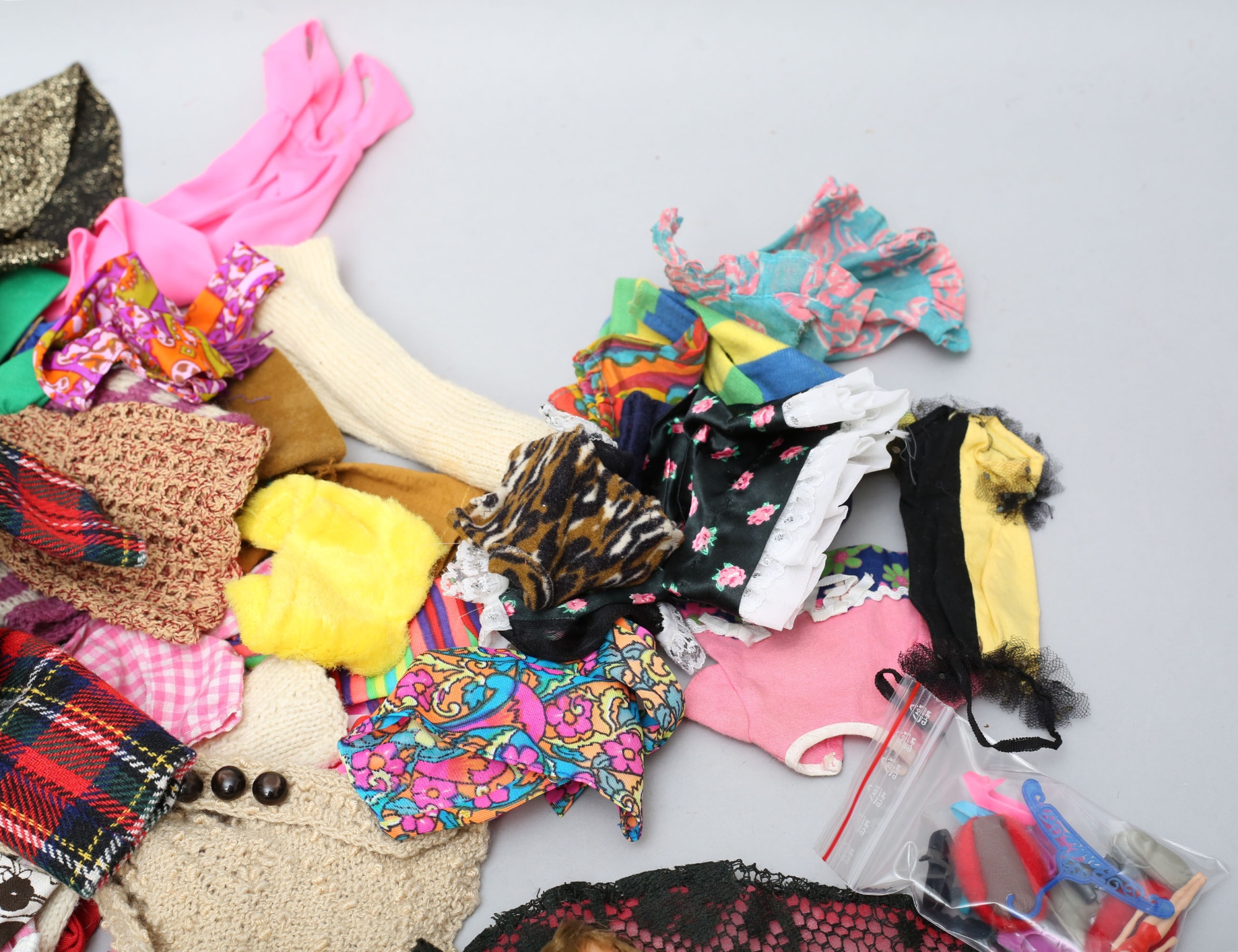 väska med tillbehör, originalkläder, skor m.m. (smärre bruksslitage)