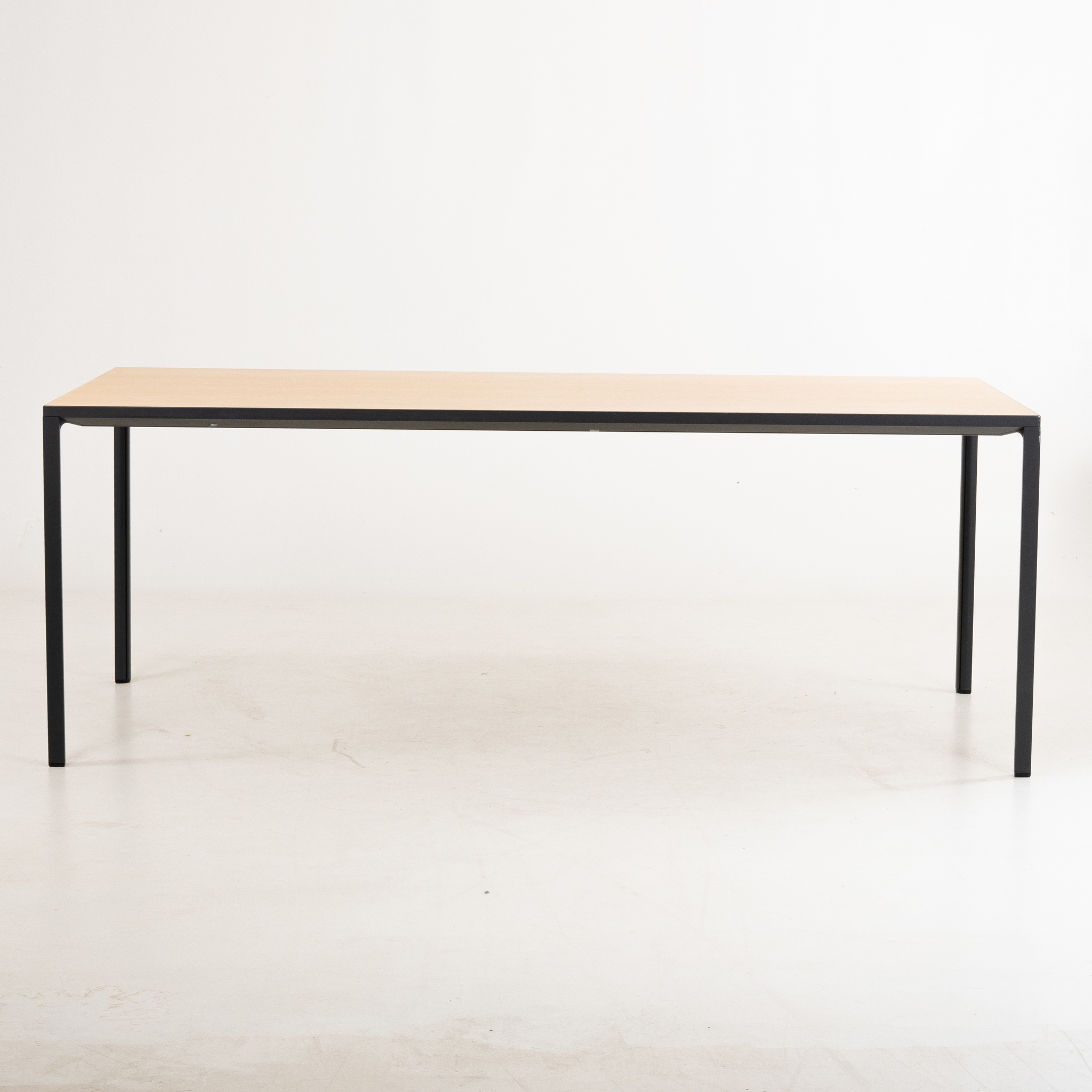Benställning av lackerad aluminium, skiva av ekfaner, höjd ca 75, 200 x 100 cm