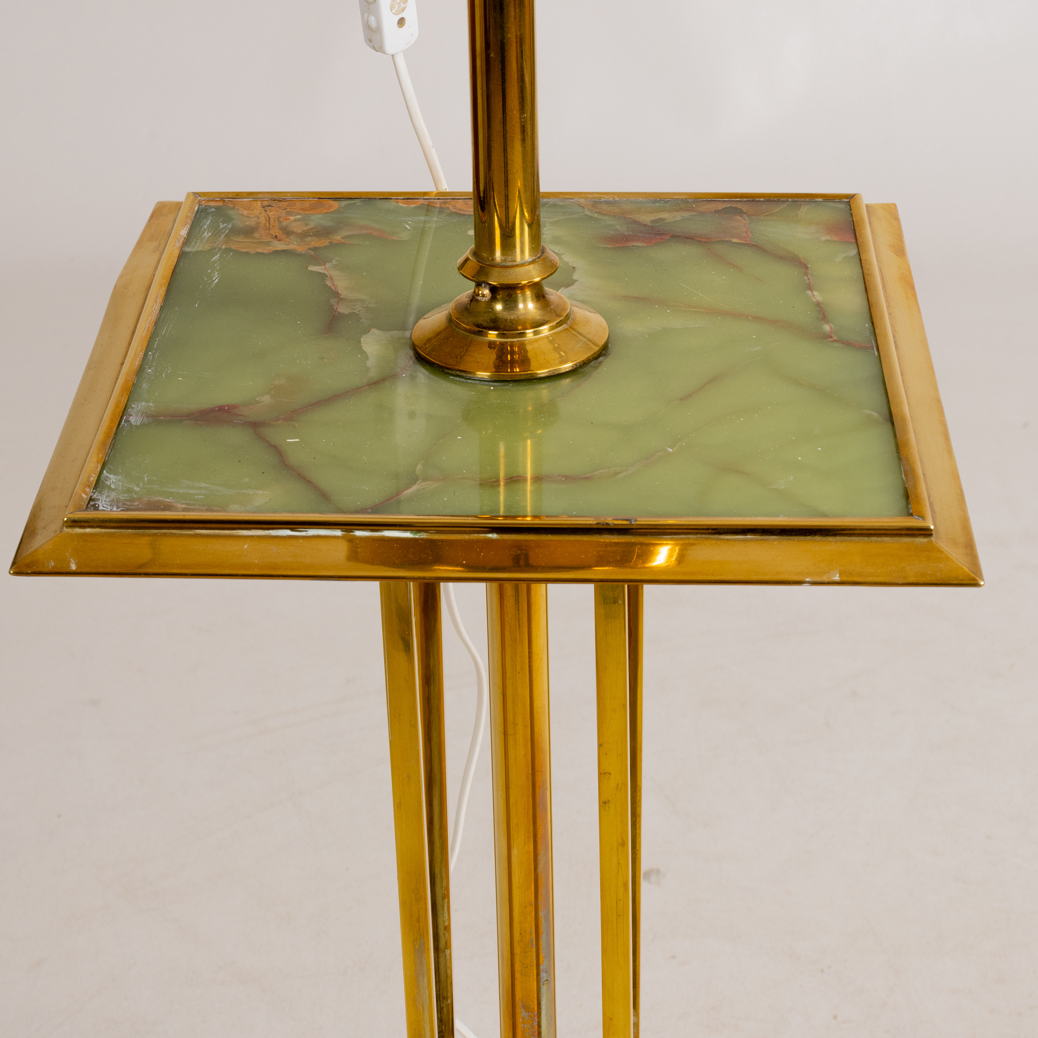 Hylla av onyx, omarbetad från fotogenlampa, oljehus av glas, plisserad skärm, höjd ca 163 cm