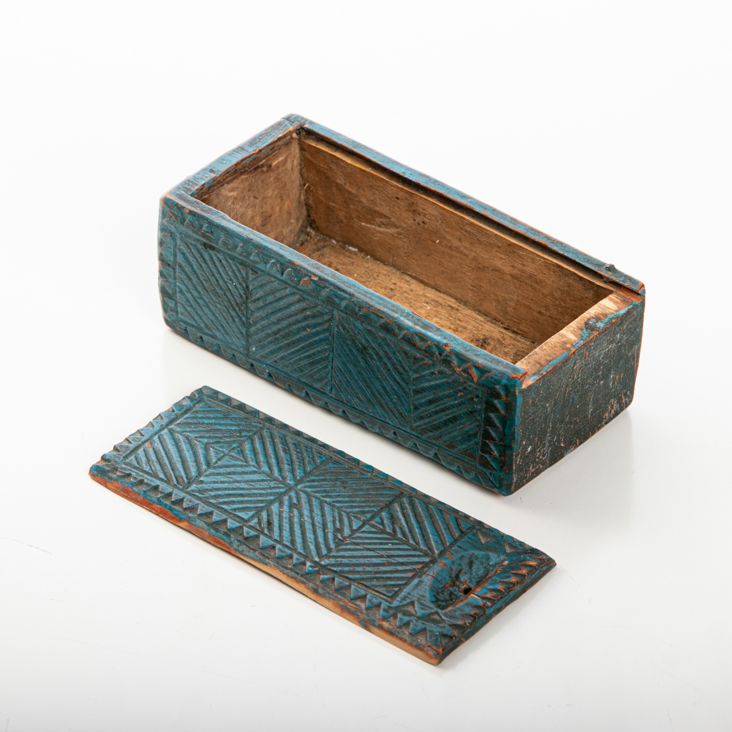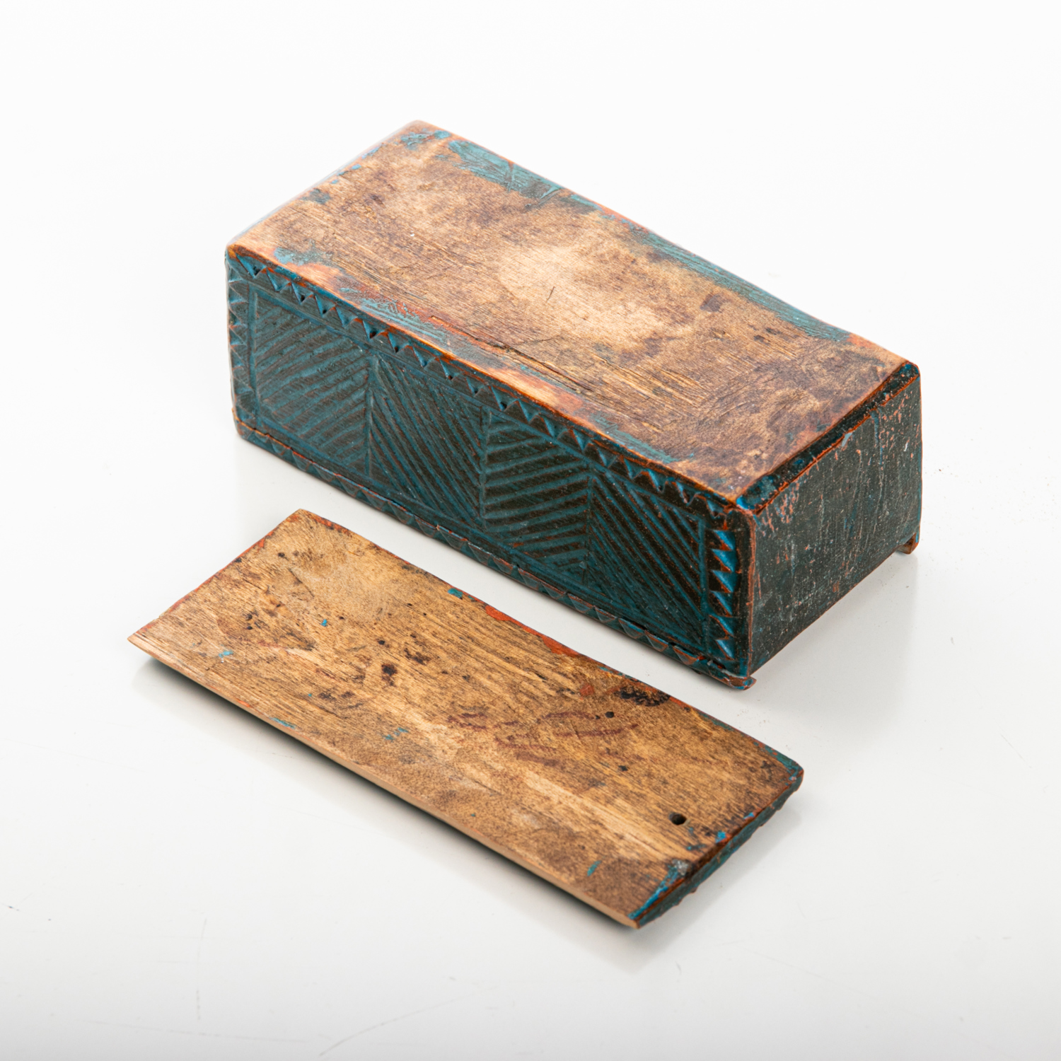 SKJUTASK, skuren dekor, bemålad, 17/1800-tal.