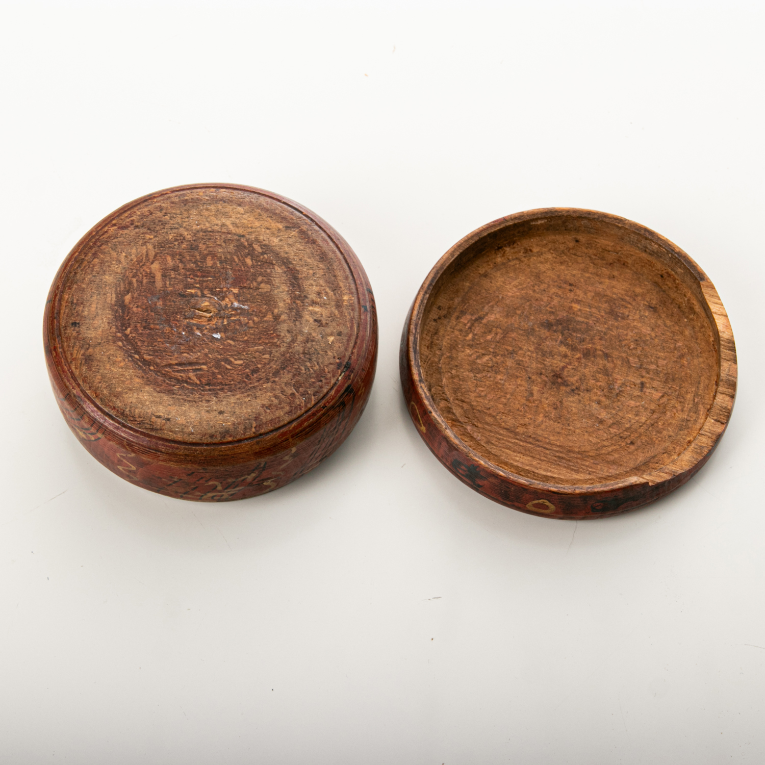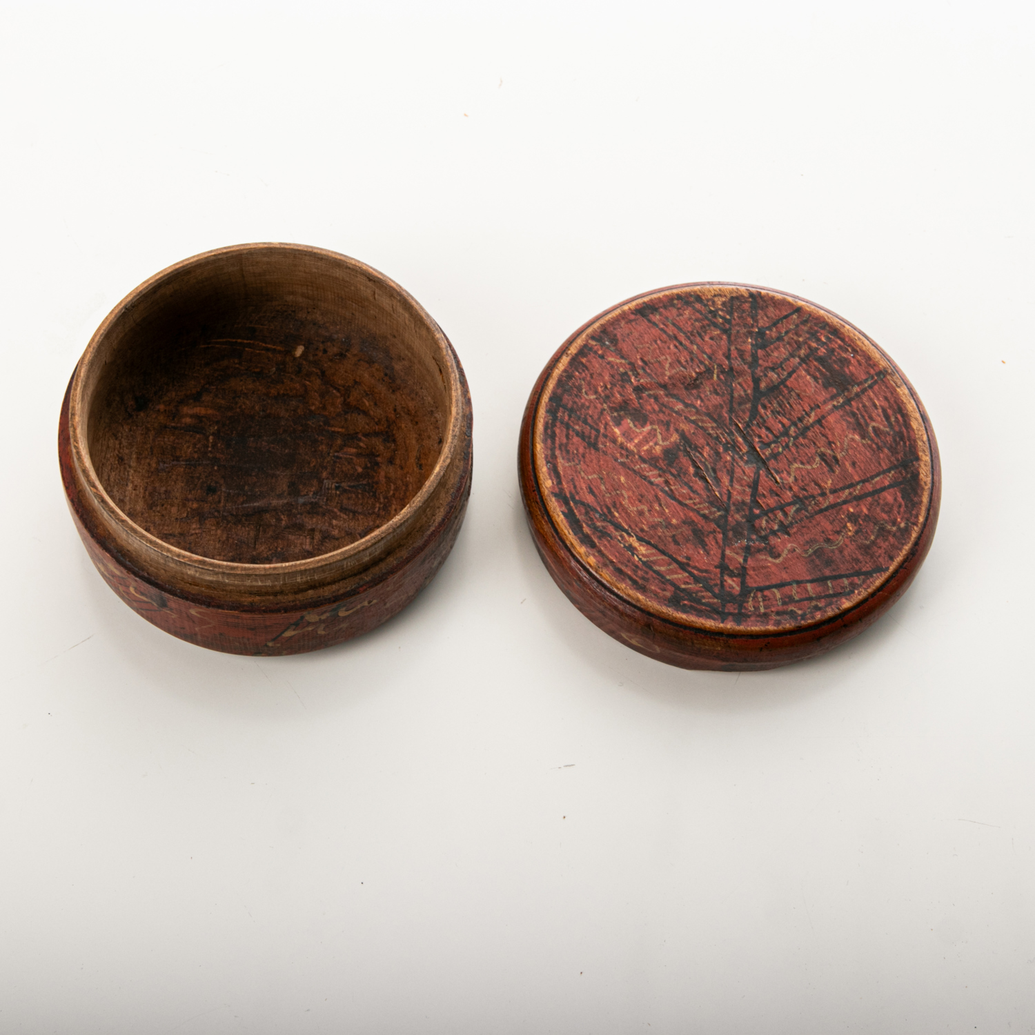 SVARVAD ASK, Västergötland, dekor av livets träd, allmoge, streckmålad, 1700-tal.