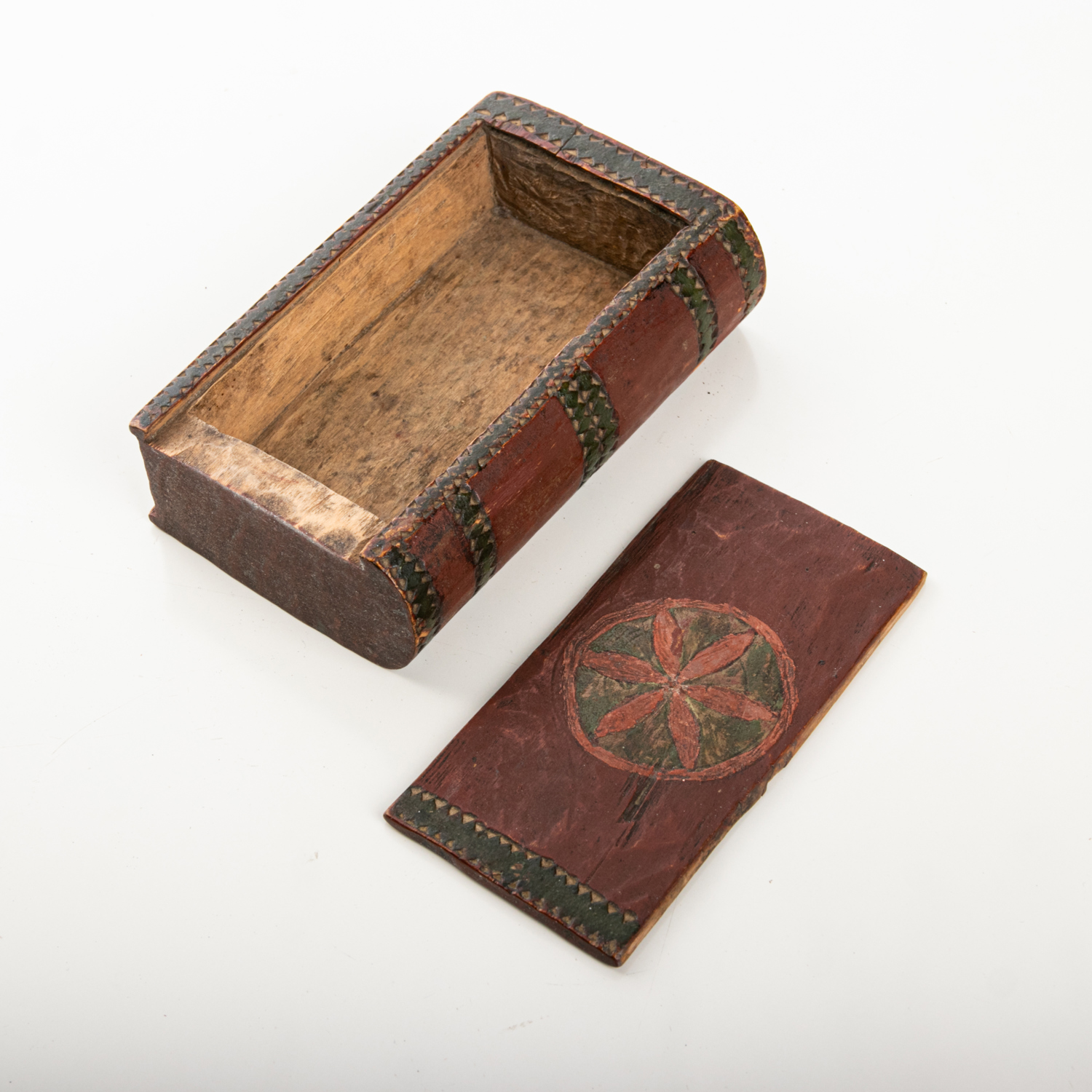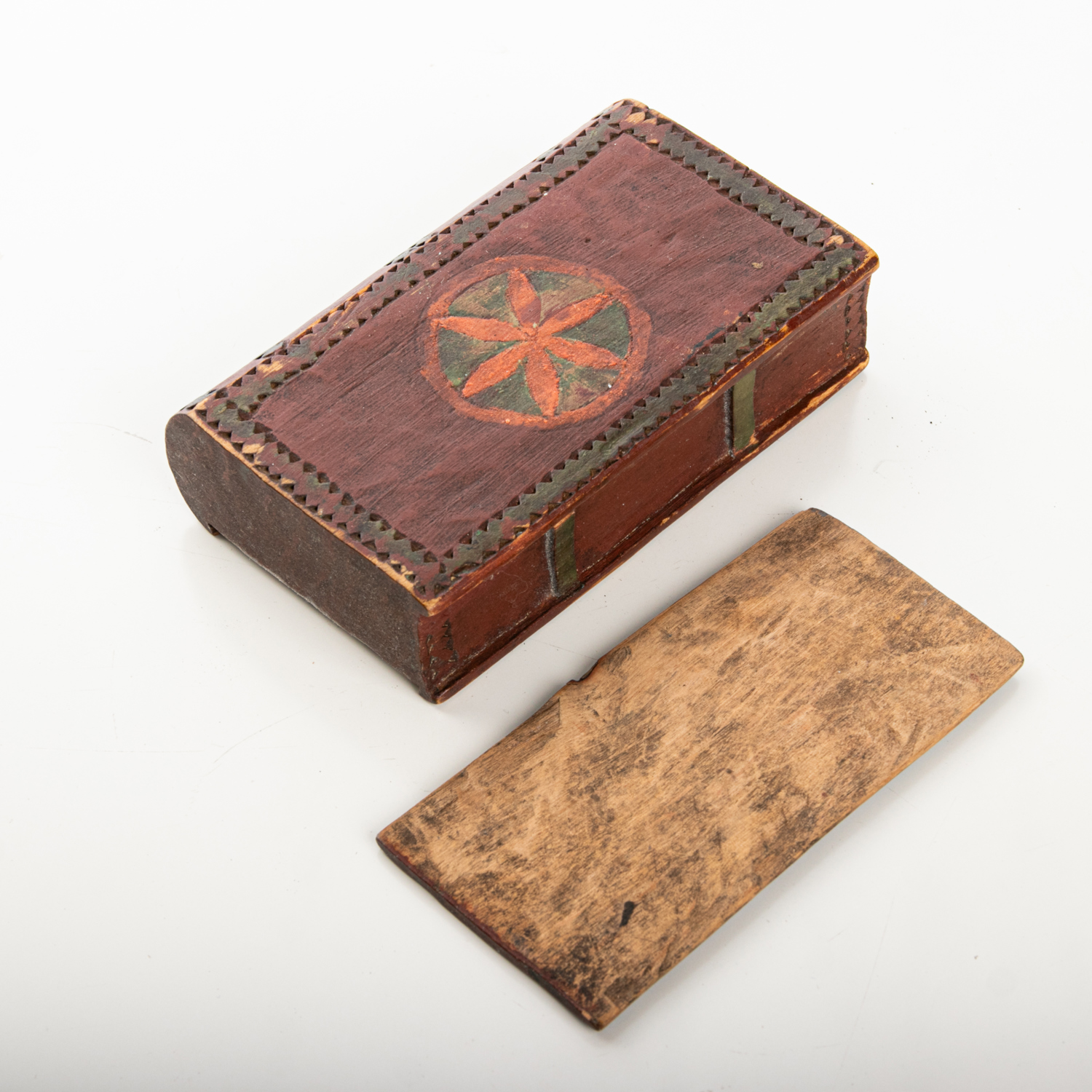 SKJUTASK, I form av en bok, allmoge, bemålad, 17/1800-tal