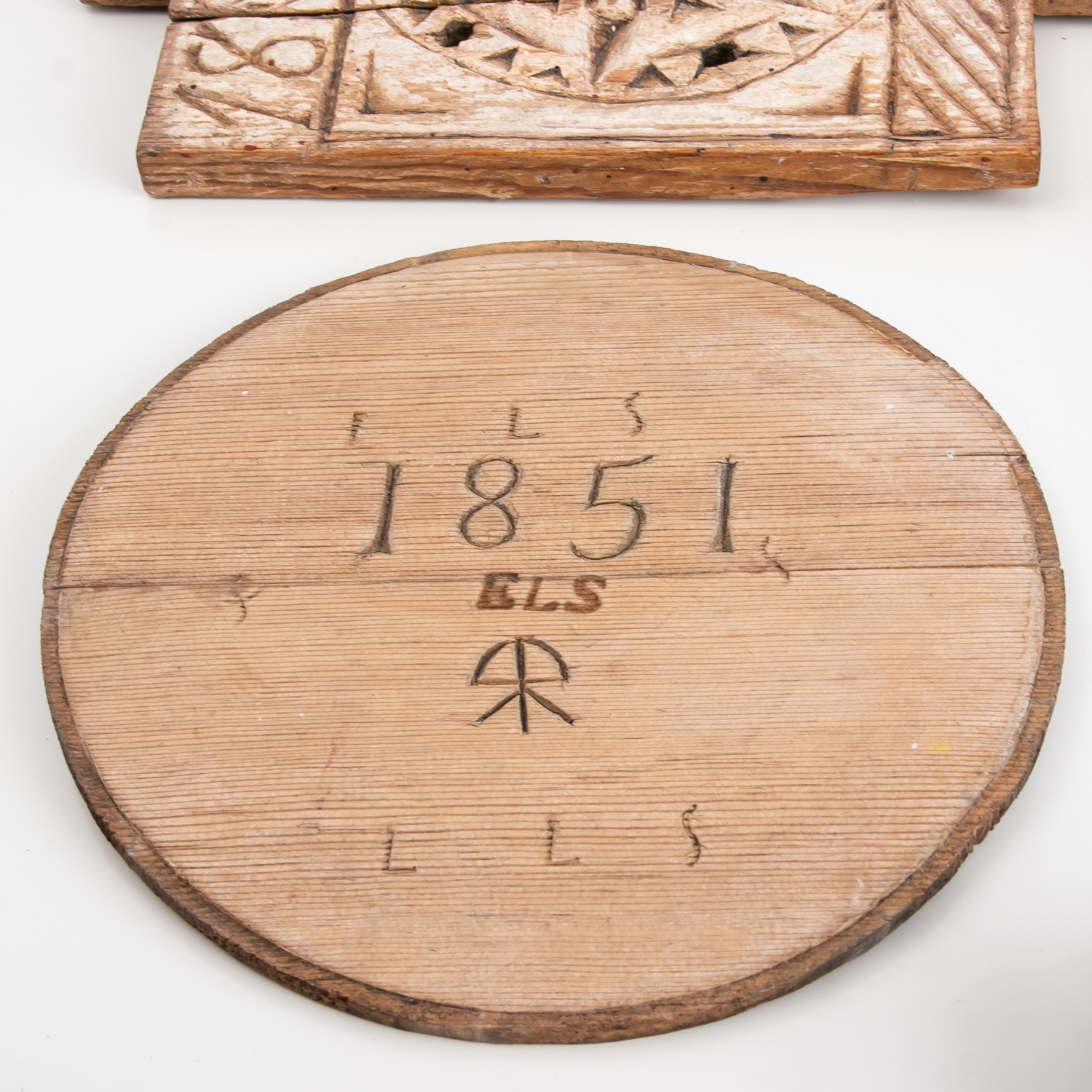ALLMOGE, 6 delar, 1800-tal, bla pennskrin, underdel till ostform, mestadels monogramsignerade, enstaka daterade.