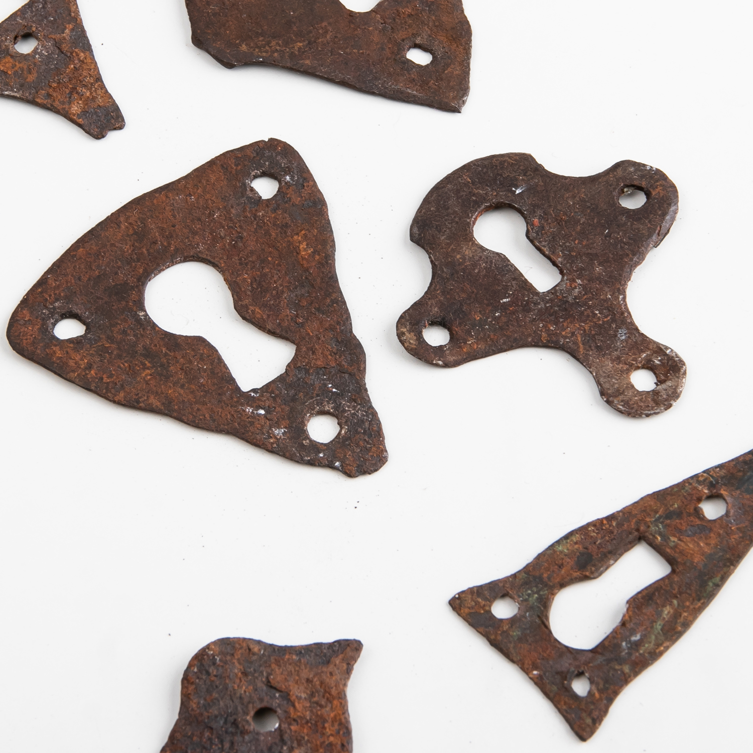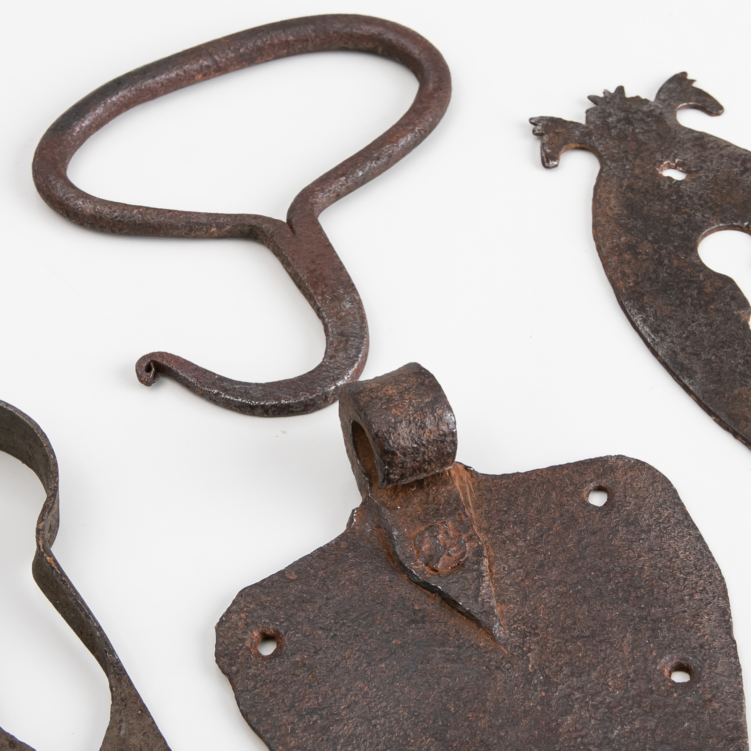 JÄRNSMIDE, 14 delar, nyckelskyltar, fårsaxar, grytkrok och dörrbeslag, 17/1800-tal.