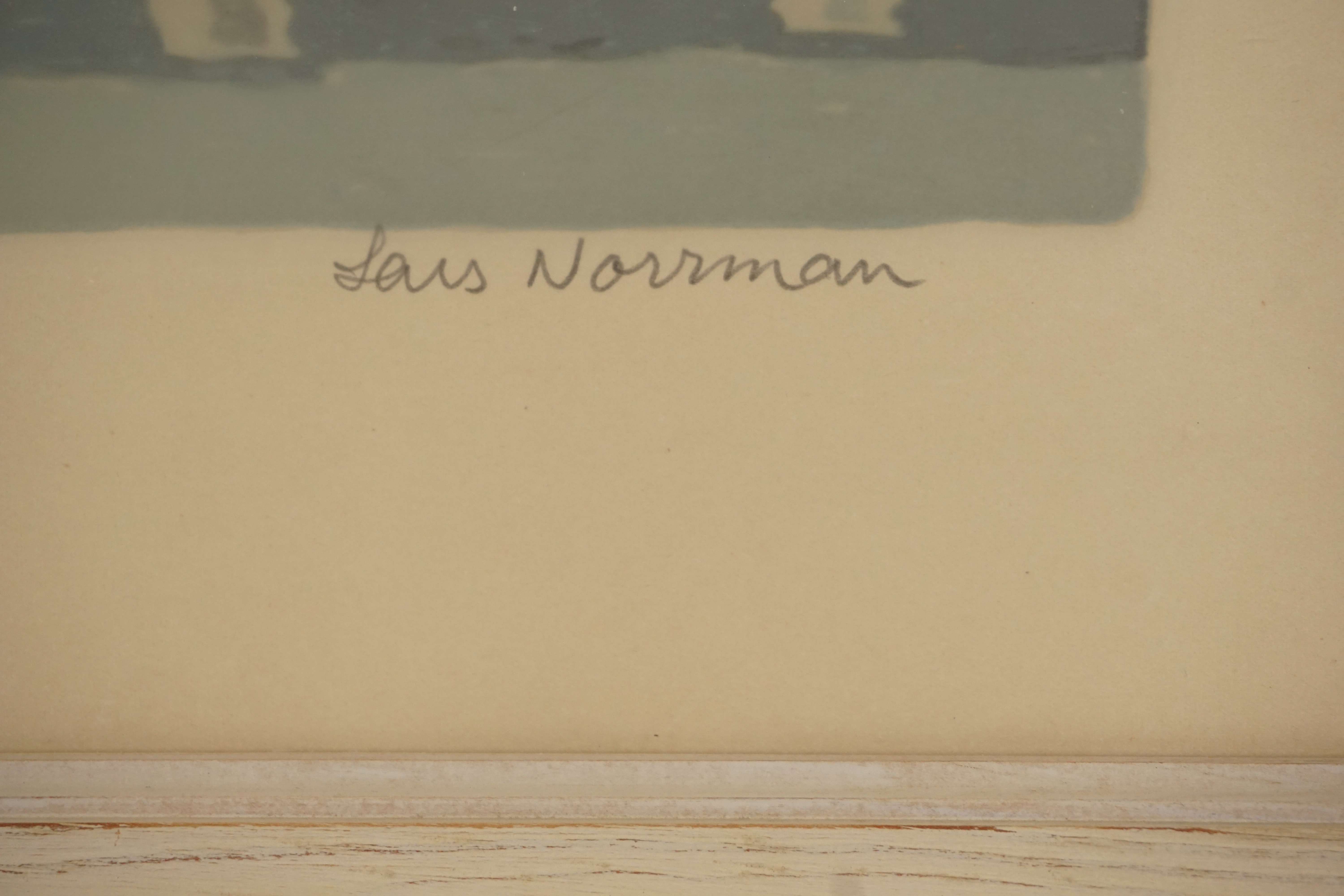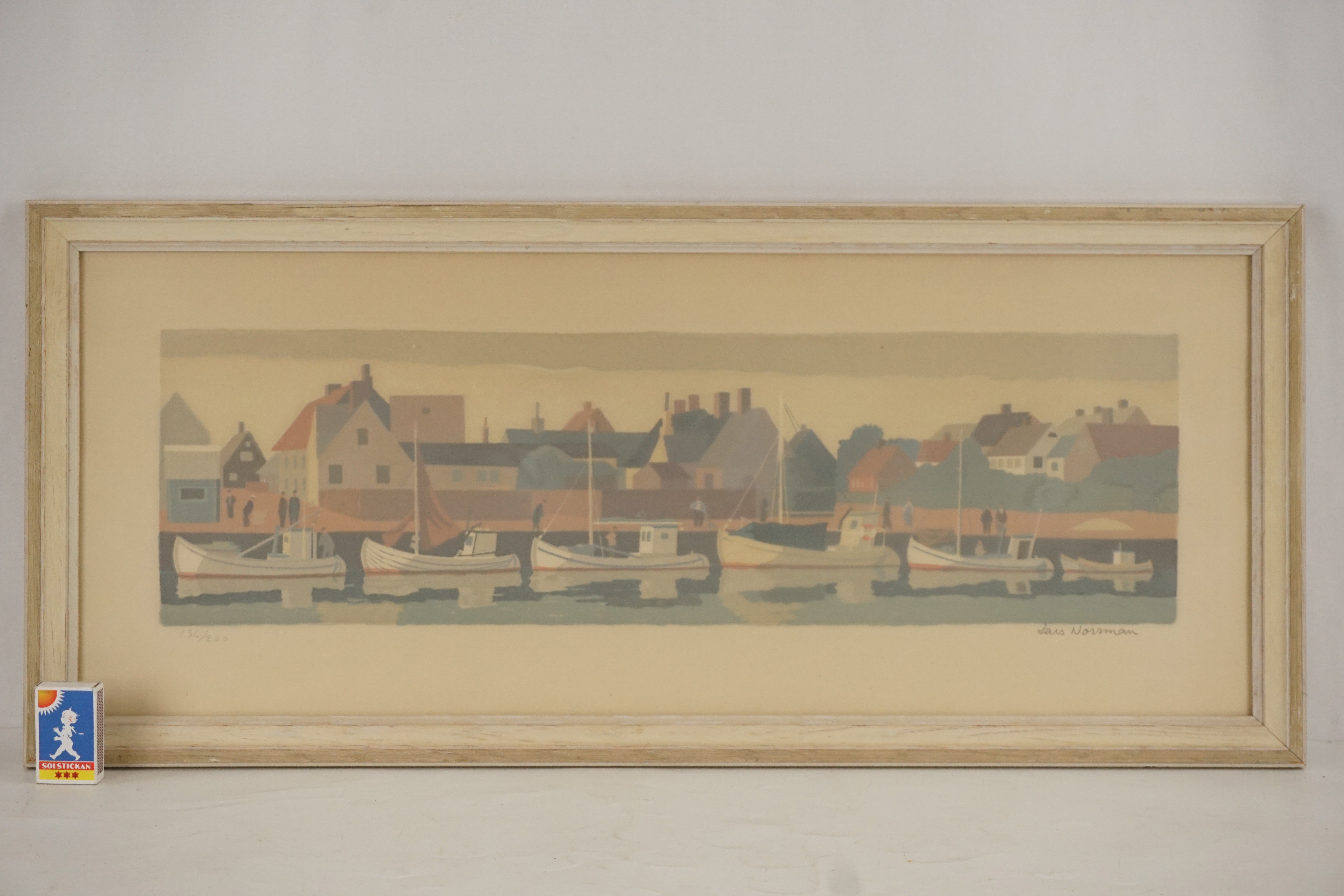Bilder Lars Norman färglitografi småbåtshamn 77x39cm. M29/