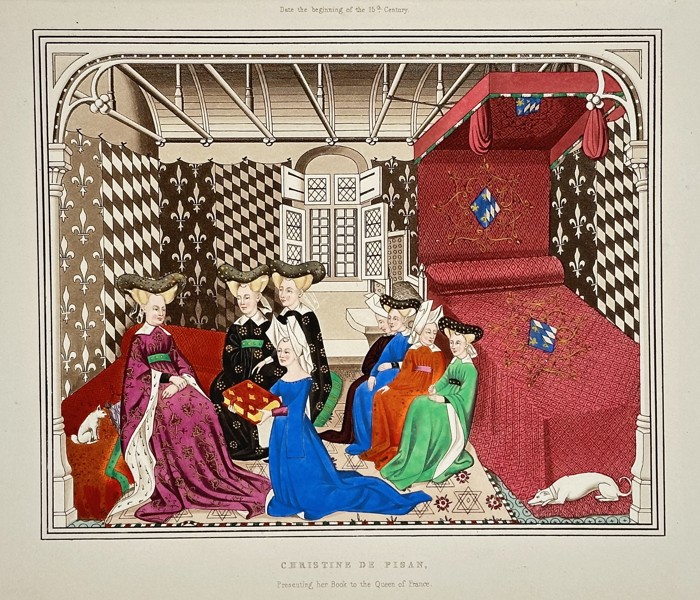 Bilder Henry Shaw (1800–1873) – Christine de Pisan Presenting Her Book to the Queen of France – Engraving, Hand-coloured (1843)