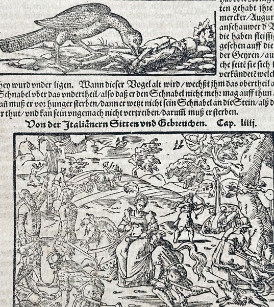 Bilder Sebastian Münster (1488–1552) – Italian Fauna and Ox-Drags (Von Italia, Von den Italienischen-Stieren oder Ochsenzugen) – Woodcut with Letterpress Text (Circa 1544–1568)