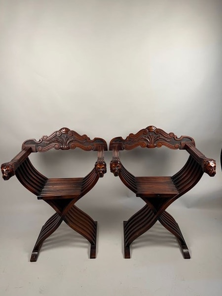 Ett par Dantestolar, slitage på utsida höger lejonhuvud.