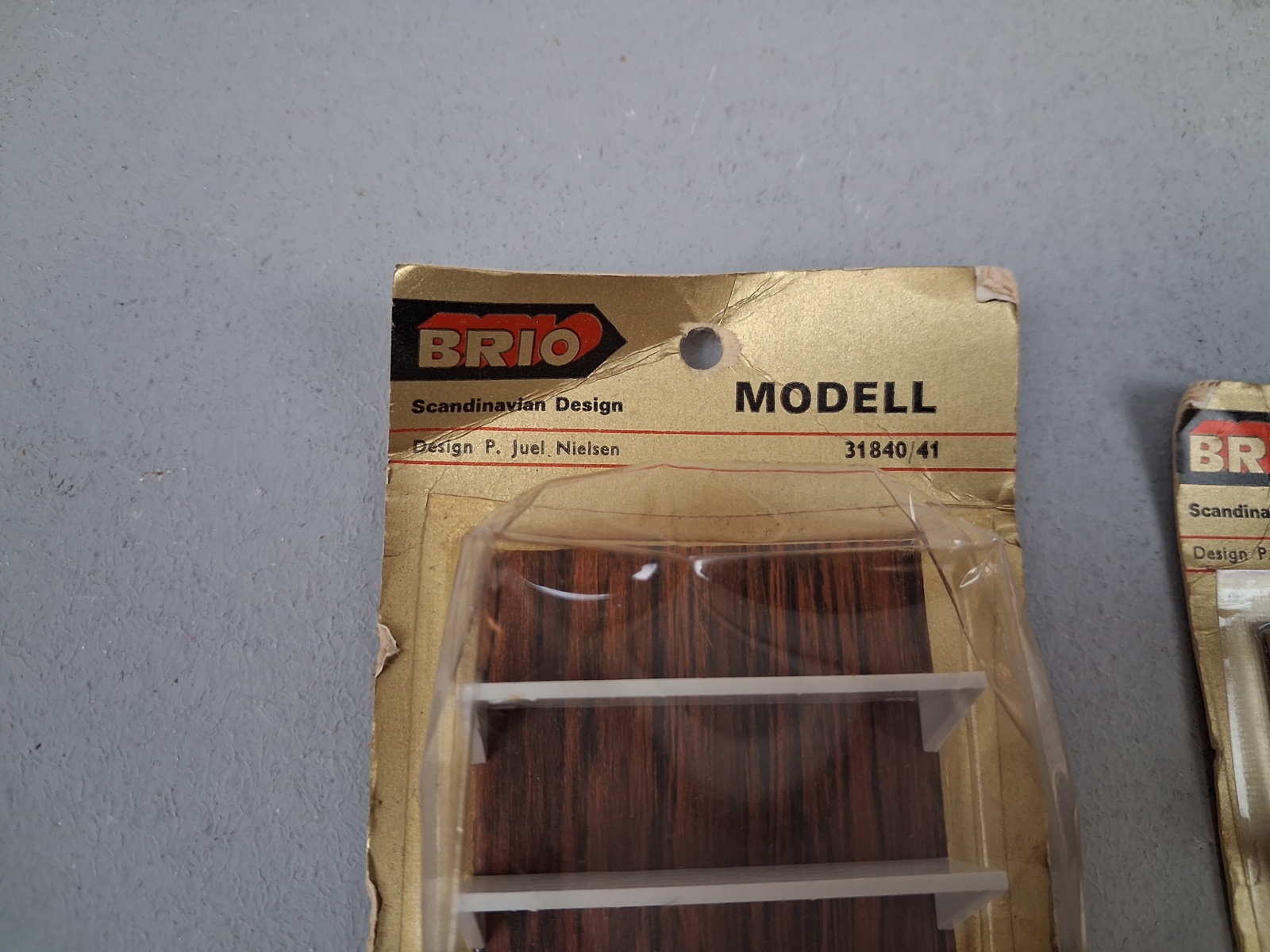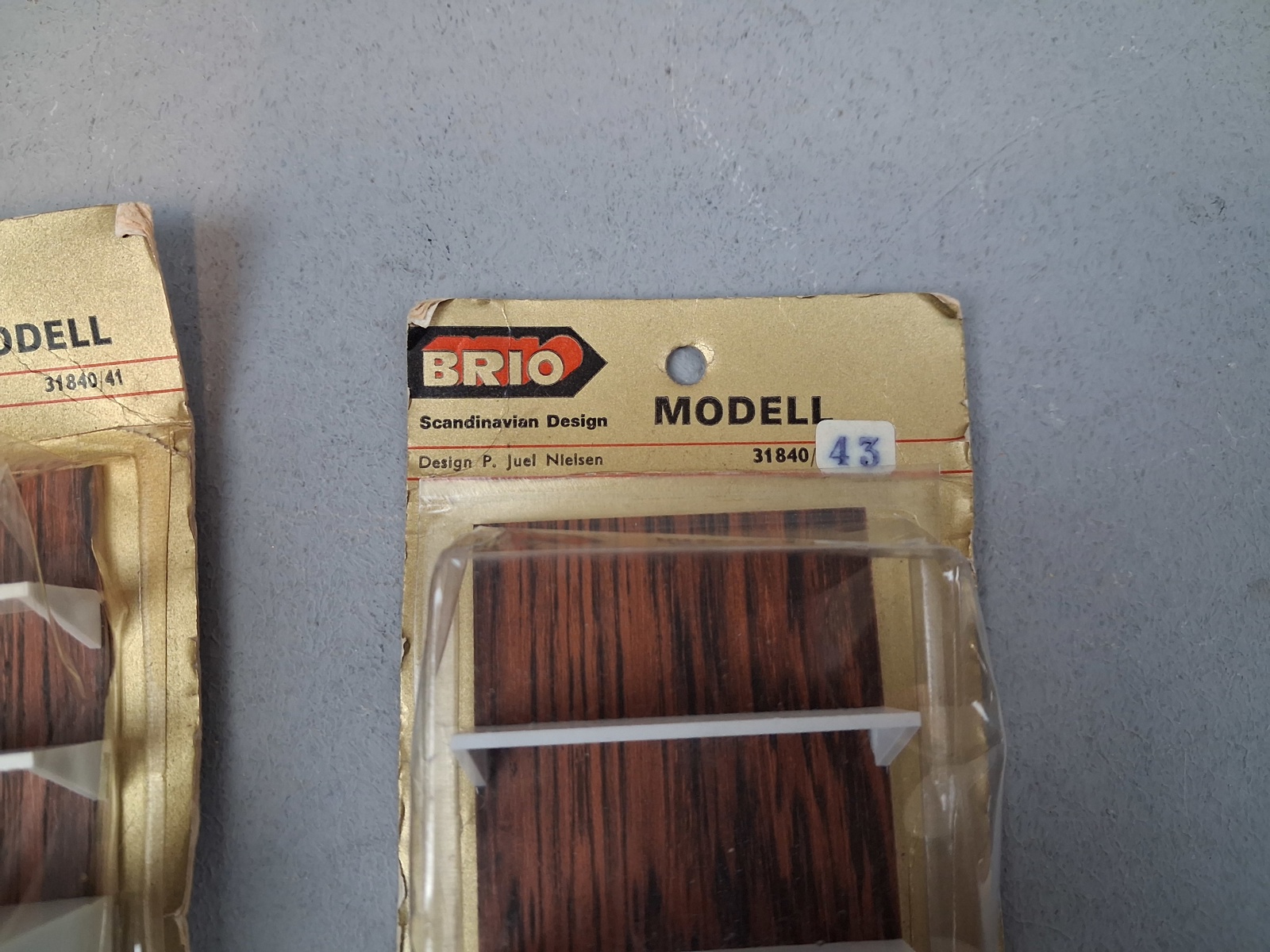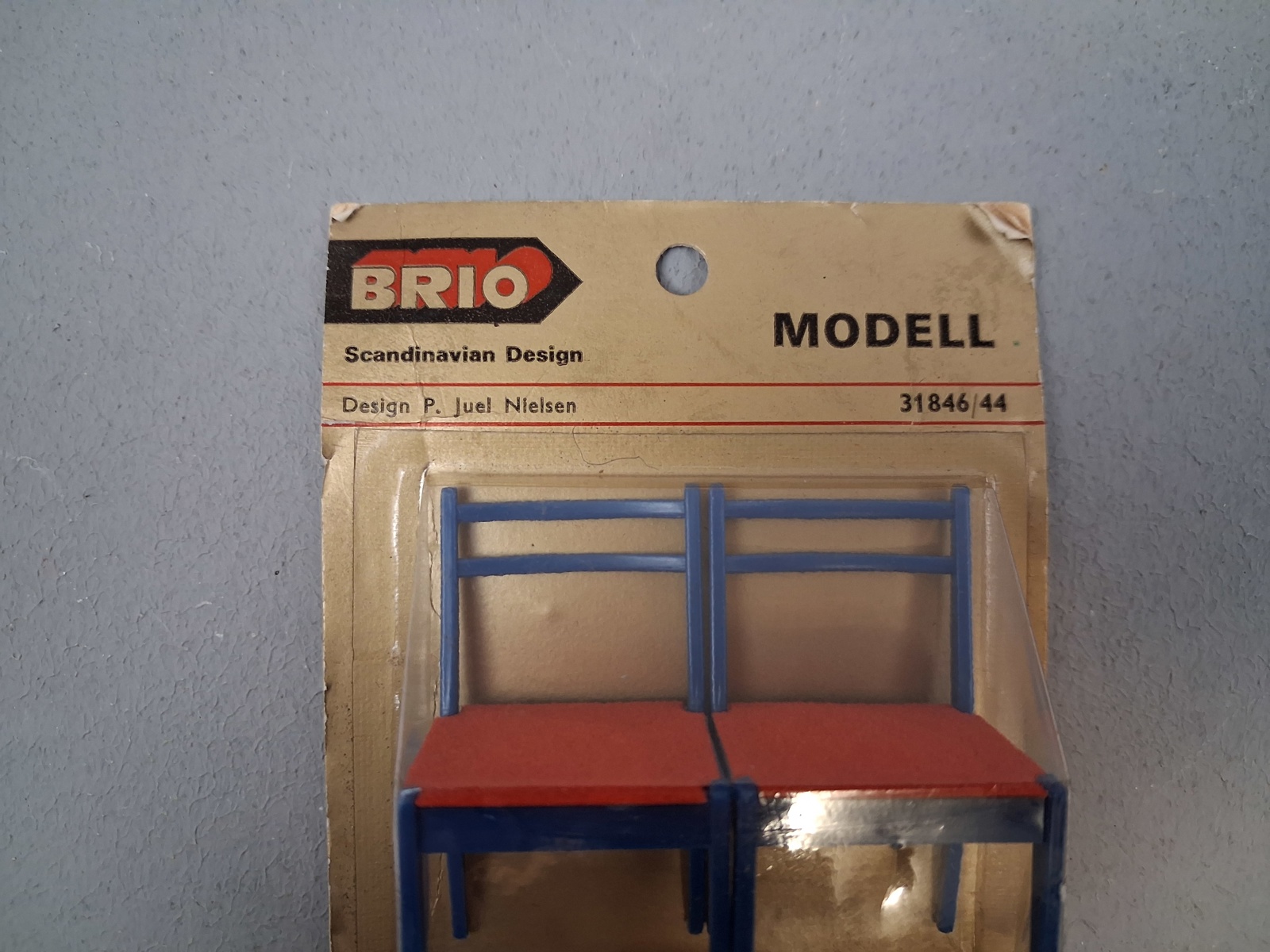 Dockhusmöbler. Brio Modell 31840/41, 31840,42, 31840/43 & 31846/44. Design P.Juel Nielsen, Originalförpackningar.