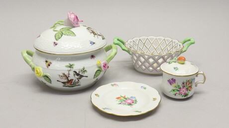 Auktioner Keramik & Porslin Servisdelar Herend, Ungern 1900-talets senare del, porslin. höjd 15 cm och lägre