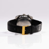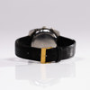 Svart urtavla med vita subtavlor kl. 3, 6 & 9, vita visare med lsvart dekor, kontrasterande orange centrumsekund