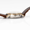 Ca 33 mm exkl. krona (40 mm lug-to-lug), roséguld på stål, skruvboett, Francois Borgel, korrekt krona, plexiglas