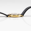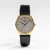 Ljus urtavla med vertikal slipning, applicerade guldfärgade stavindex, datumvisning kl. 3, guldfärgade visare utan lysmassa
