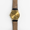 Ca 33,5 mm exkl. krona (39,5 mm lug-to-lug), 18k guld, klämboett, baksida med gravyr; "För nit och redlighet i rikets tjänst", signerad krona, safirglas