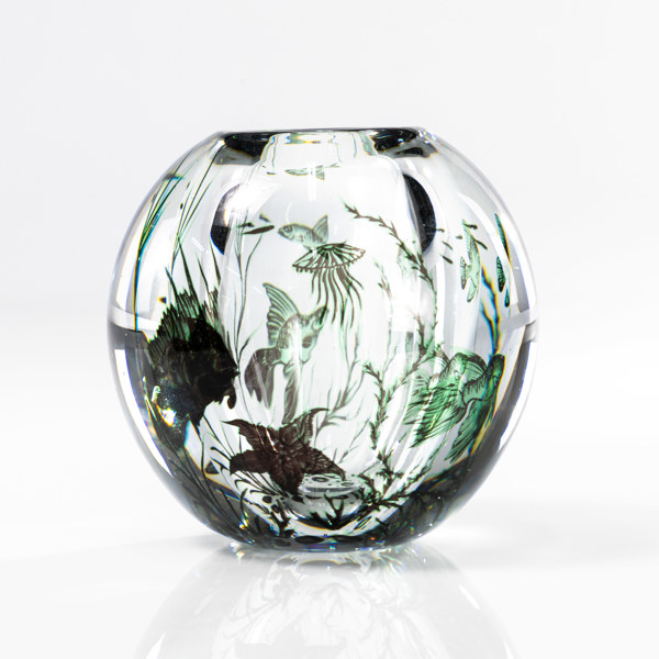 Bilder Edward Hald, vas, fiskgraal, nr. 1972, signerad, 1945, Orrefors, höjd 15 cm