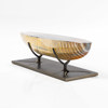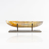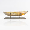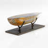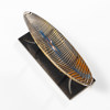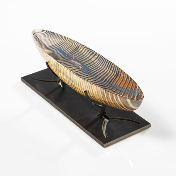Bertil Vallien, skulptur i form av båt, "Caspar", klar glasmassa med innesluten figur, signerad "7520146, Kosta Boda, AC-2020" samt "B. Vallien", Kosta Boda, etikettmärkt, kommer med ställning i järn, längd 25 cm, kommer med original Kosta Boda-kartong