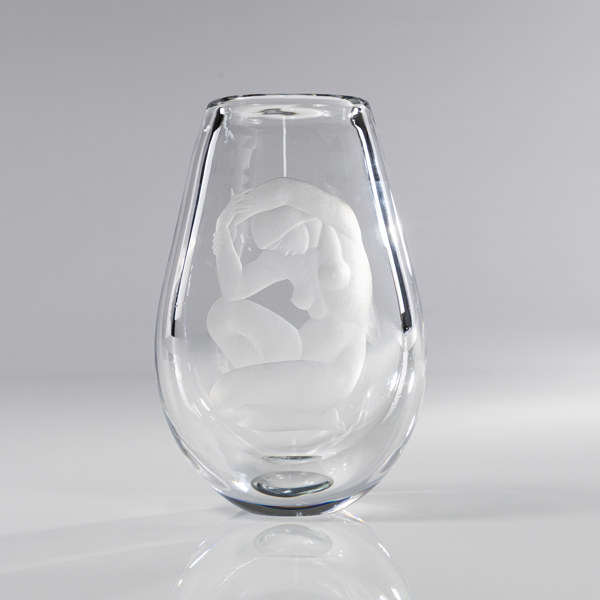 Vicke Lindstrand, vas, slipad dekor av kvinna, signerad "Orrefors, Lindstrand, 1645.A3.S.A.", höjd 27 cm