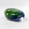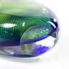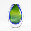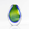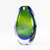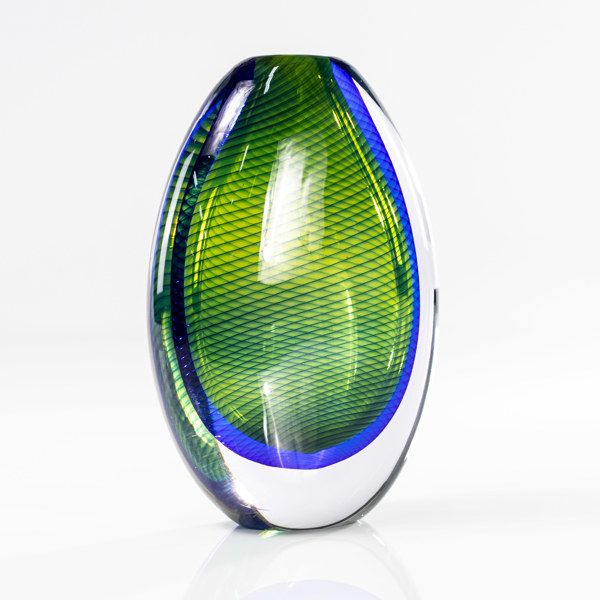 Micke Johansson, vas. underfångsglas i grönt och blått med nätmönster, signerad, egen hytta i Örsjö, höjd 23,5 cm