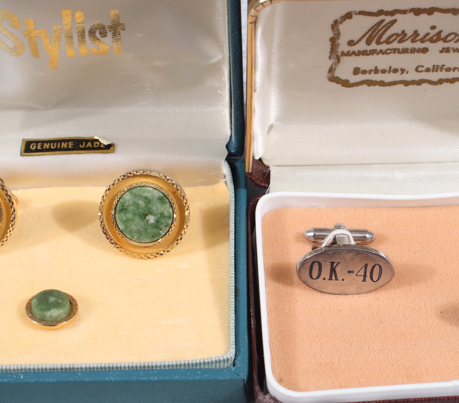 2 par, 1 par O.K.-40 i sterling samt 1 par i förgylld metall och jade. (vån3)