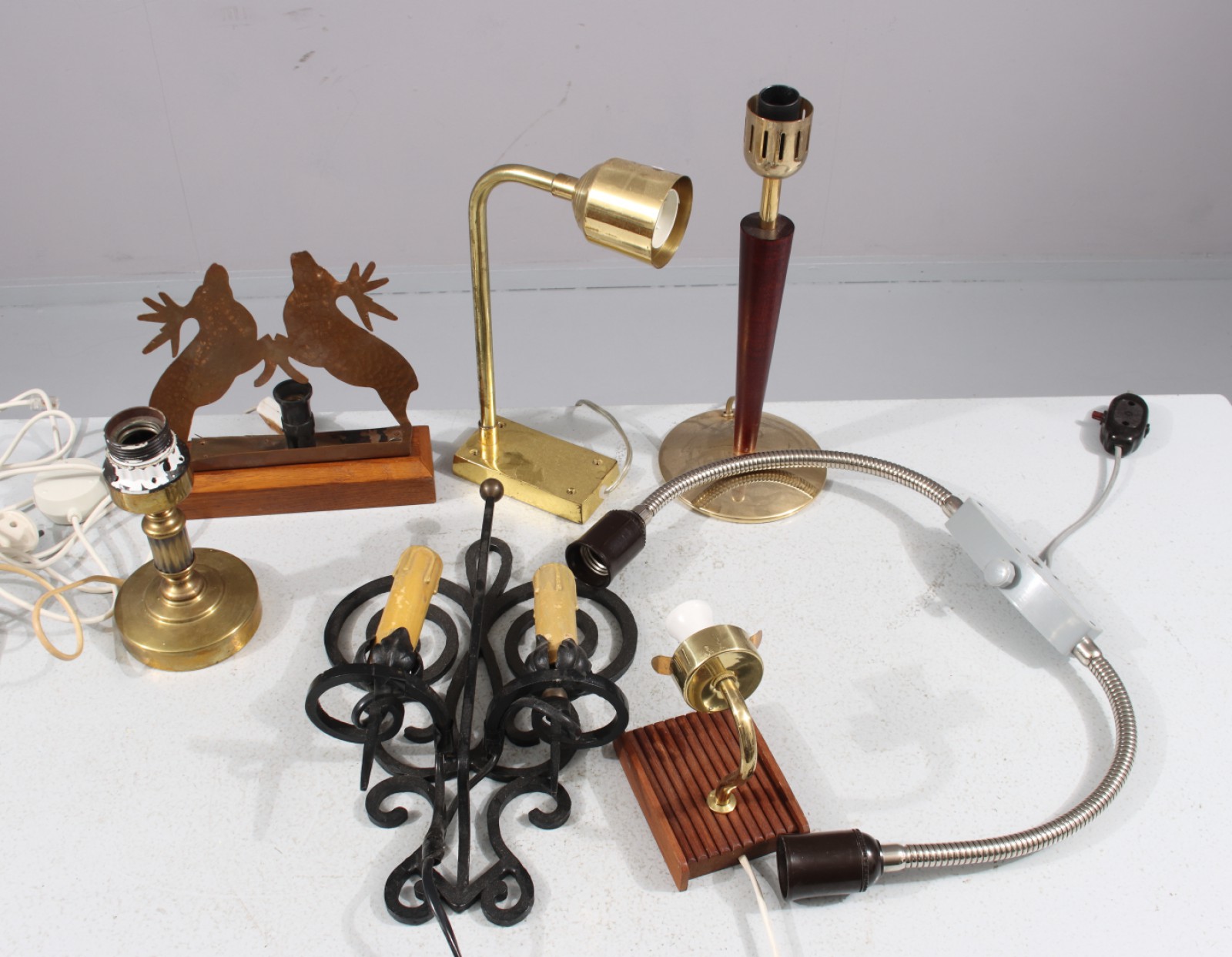 7 stycken, olika material, skärmar saknas, höjd 32 cm och lägre. (vån3)