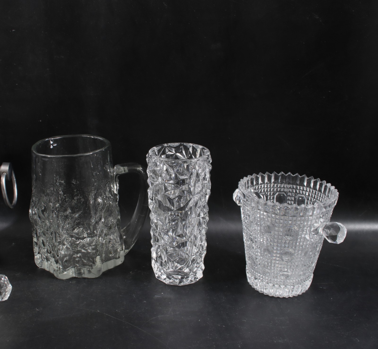 6 delar, champagnekylare i rostfritt övriga delar i glas, höjd 19 cm och lägre. (vån3)