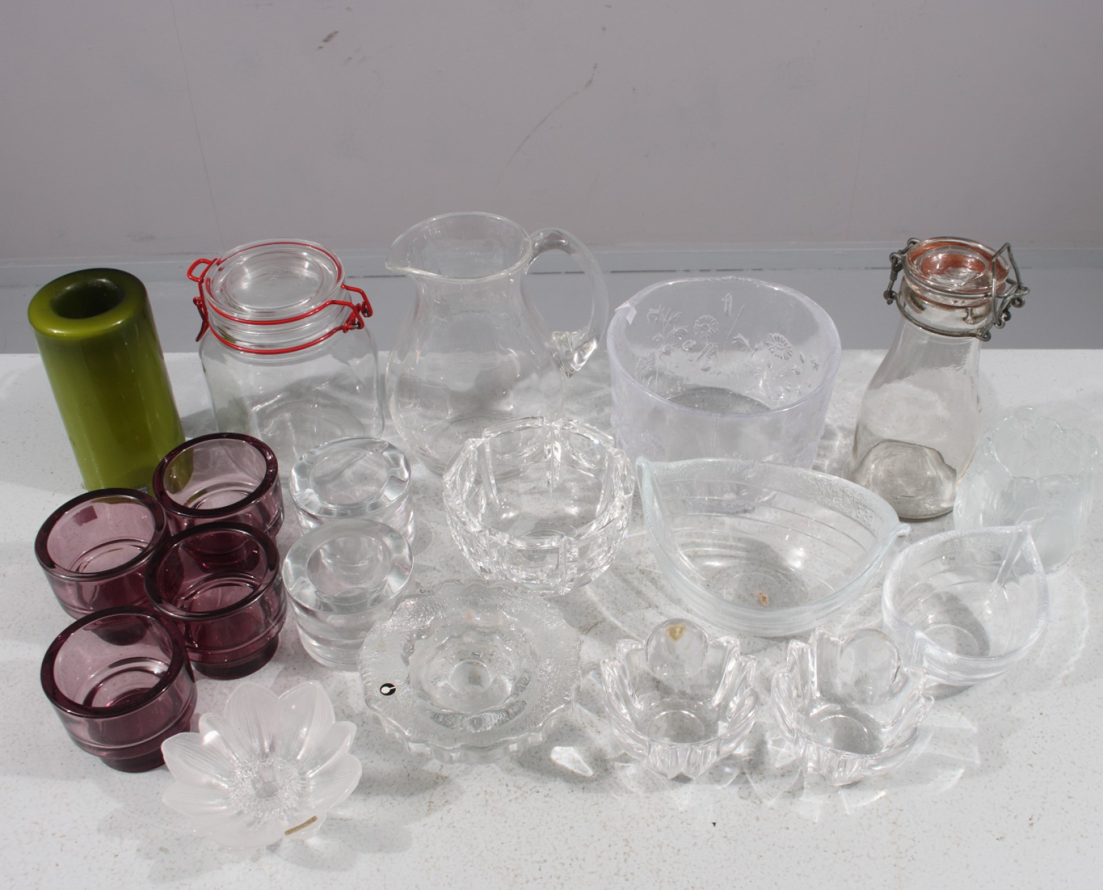 Samling, bl.a Nybro "Räkbåtar", Orrefors och Kosta ljuslykta, höjd 20 cm och lägre. (vån3)