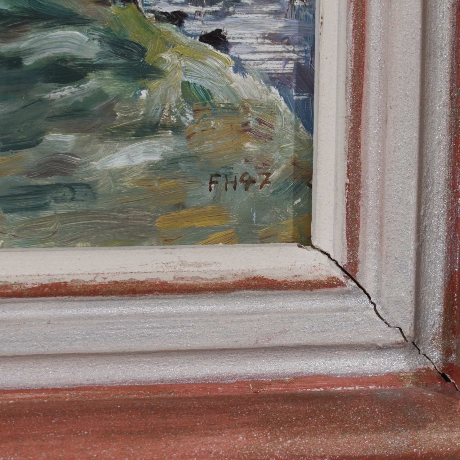 Olja på pannå, "Naturscen" signerad FH samt daterad -47, ram 39,5x47 cm, bild 25,5x33 cm. (vån3)