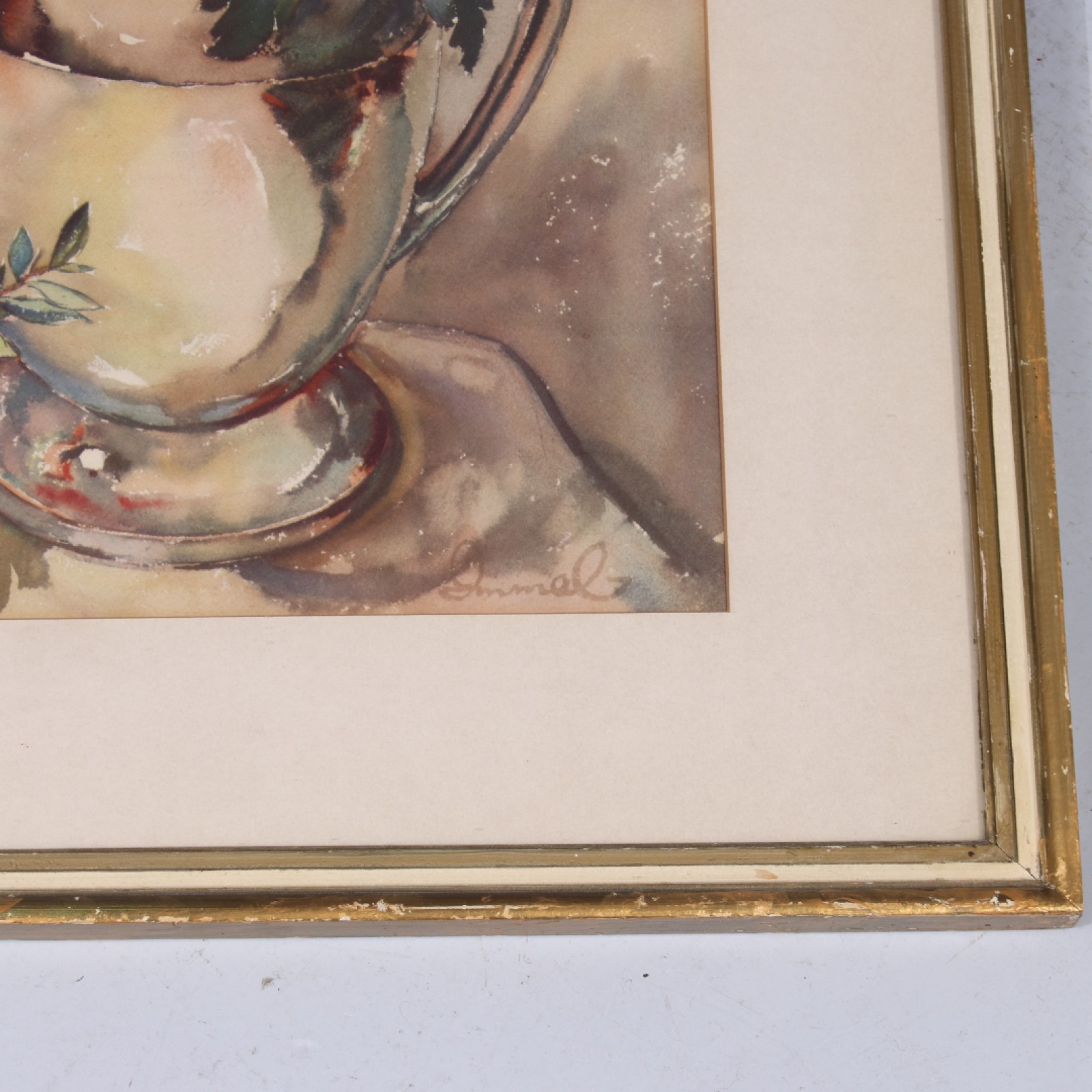 Tryck, reproduktion, "Blommor i kanna", ram 70x60 cm, passepartout 50x40 cm. (vån3)
