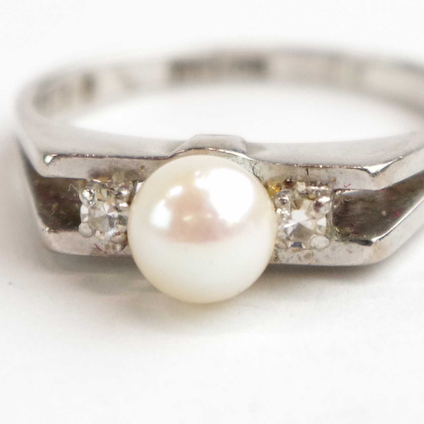 RING vitguld 18K med pärla och diamanter D:17 mm Total V:3,88 g