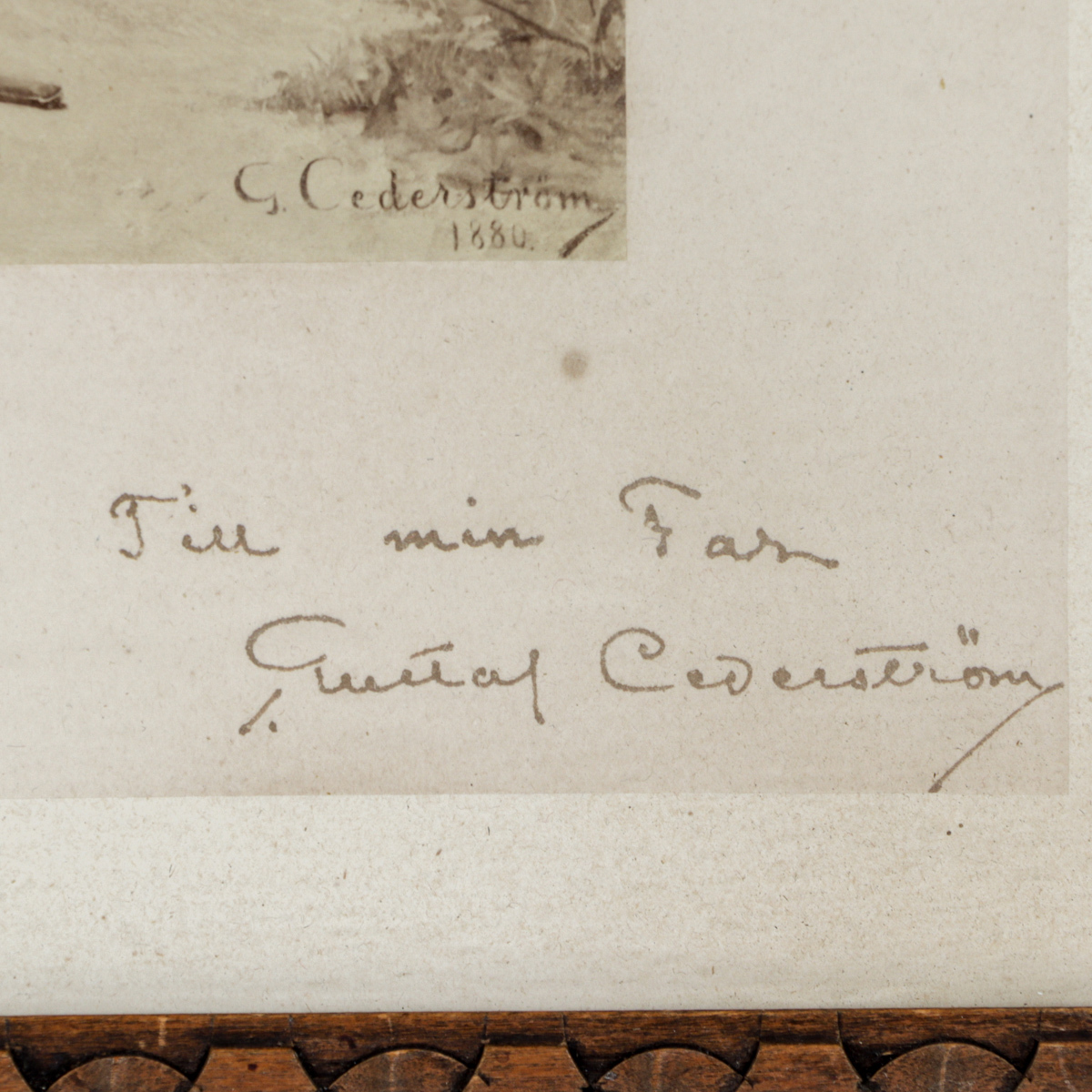 Tavla, tryck, med signerad dedikation av Gustaf Cederström
