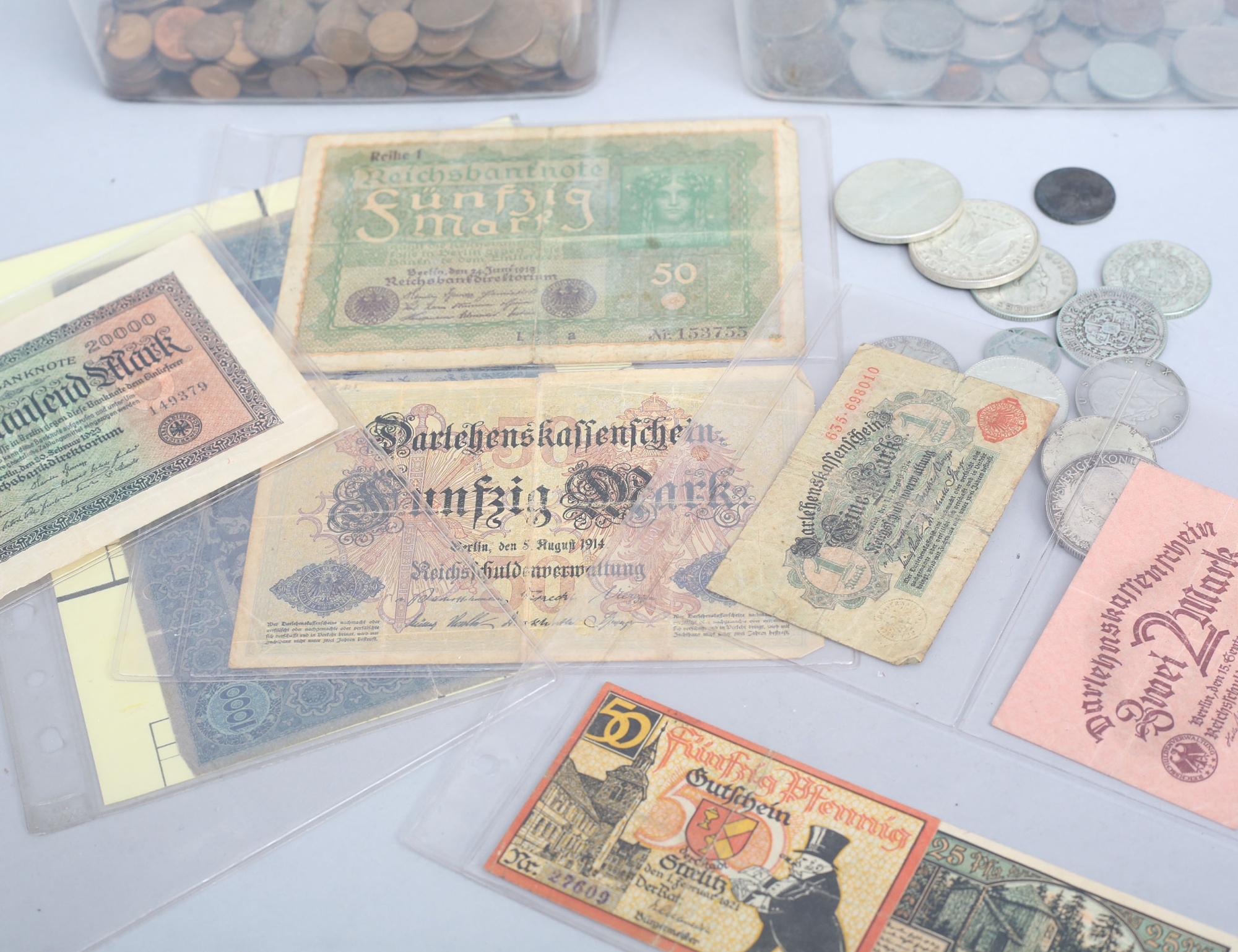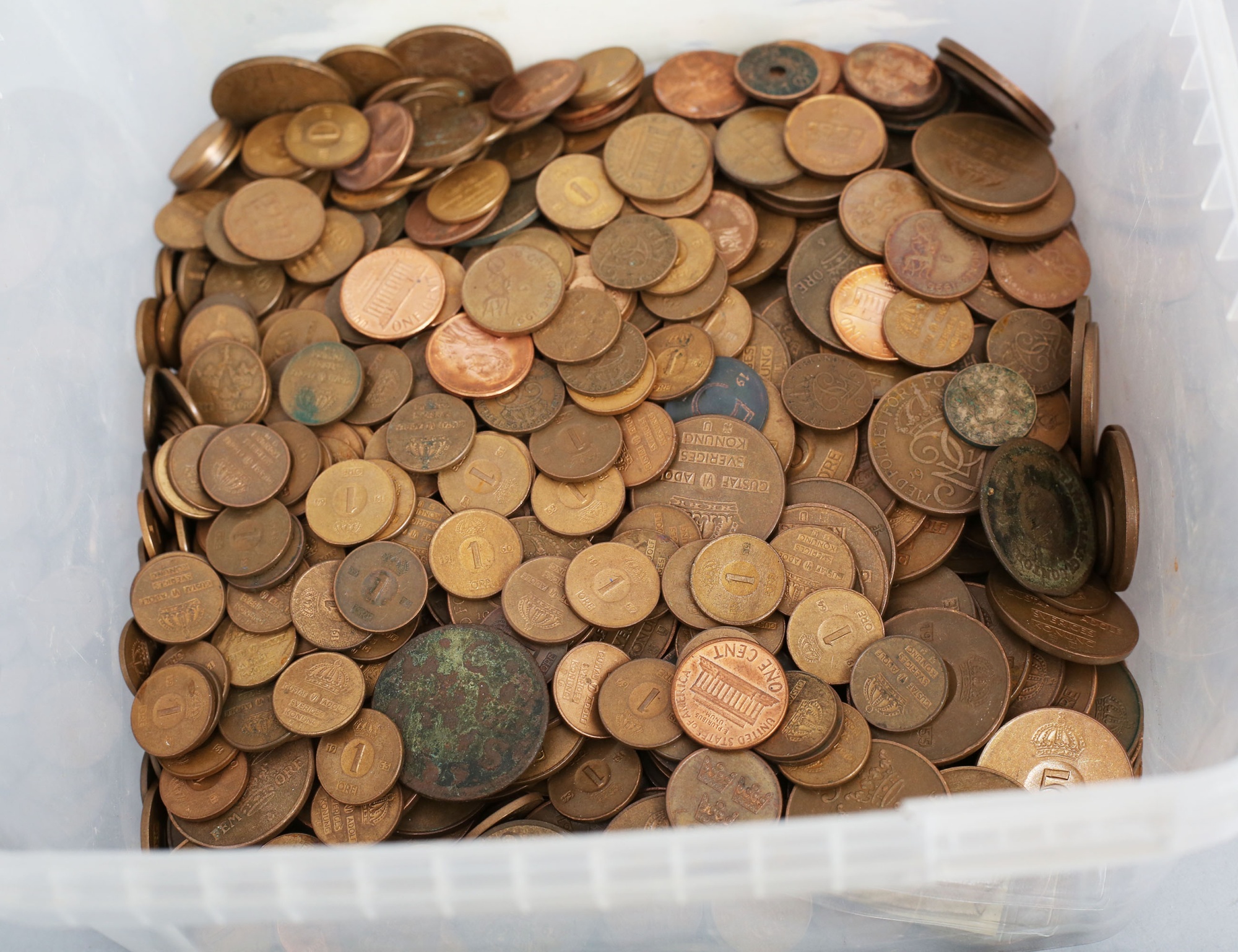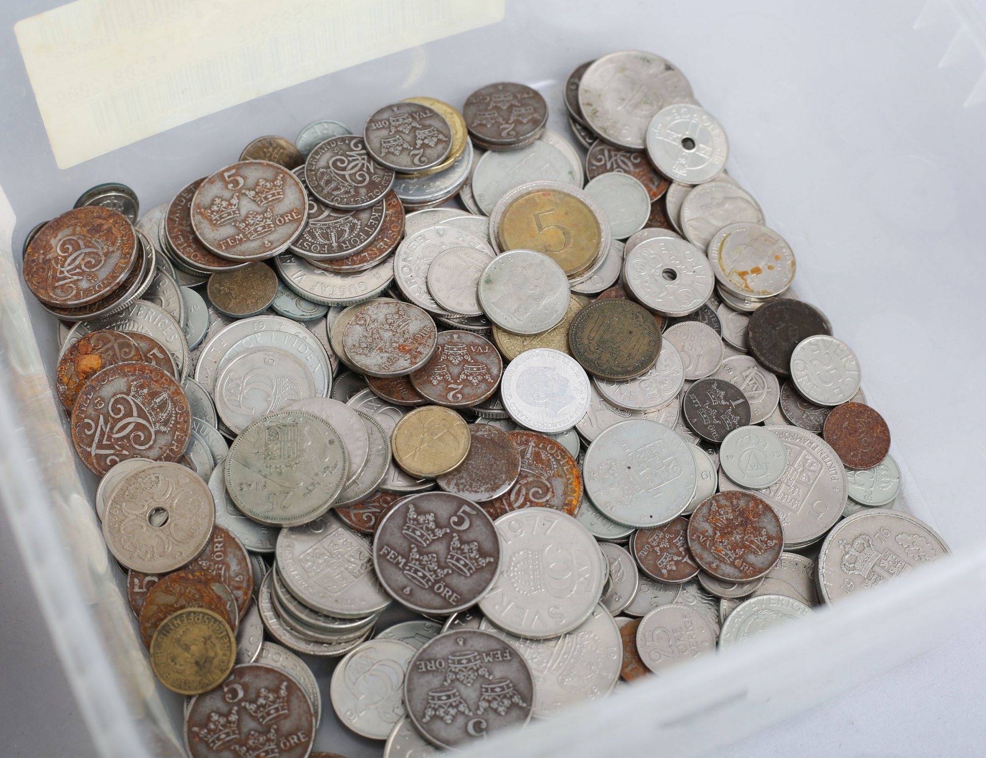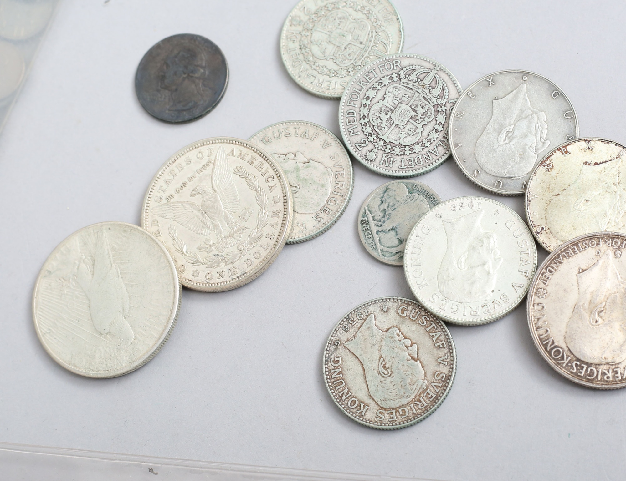 mynt 800-900/1000, vikt ca. 195 gram, bla. 2 silverdollar 1921 respektive 1923, kopparmynt >3,5kg m.m.