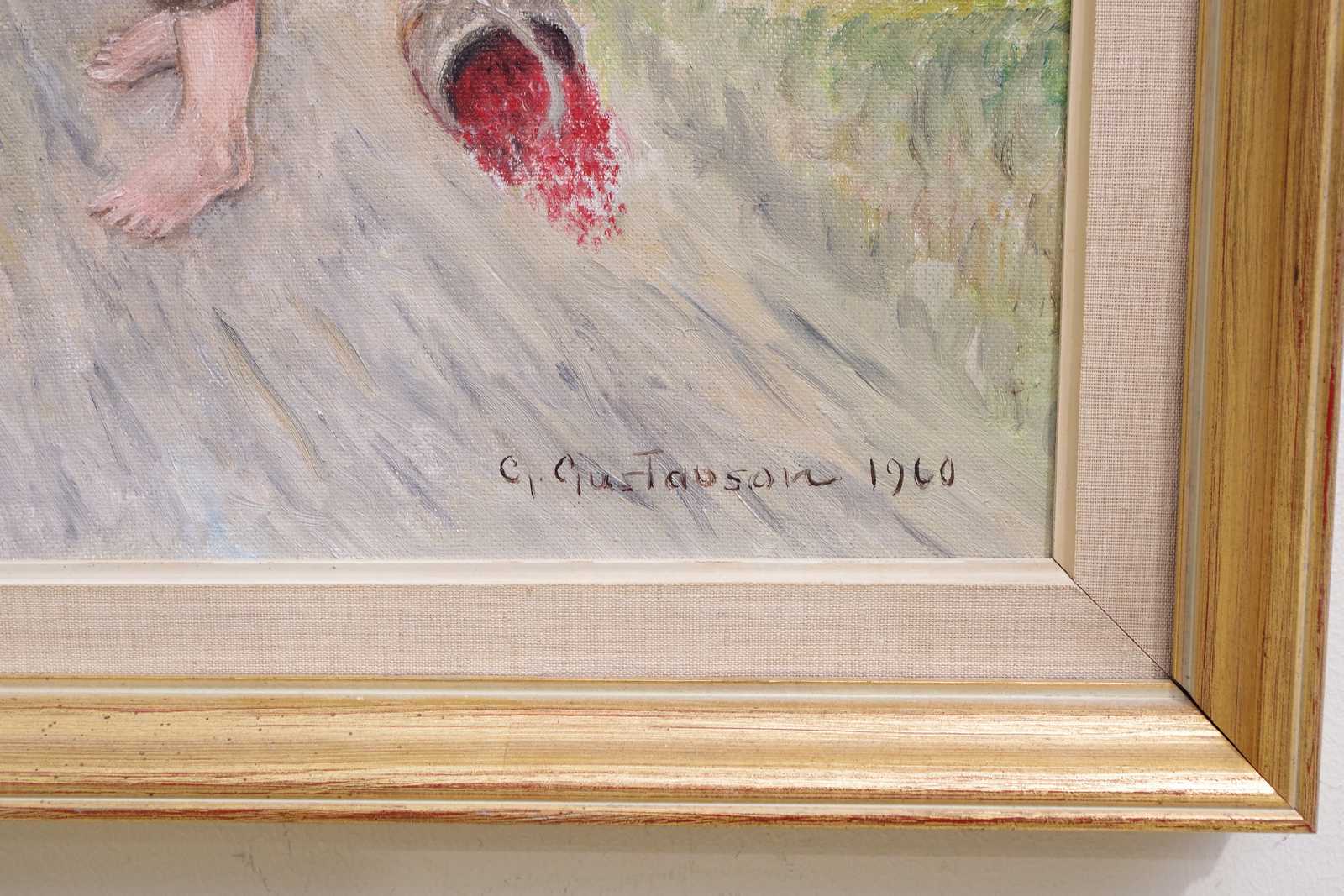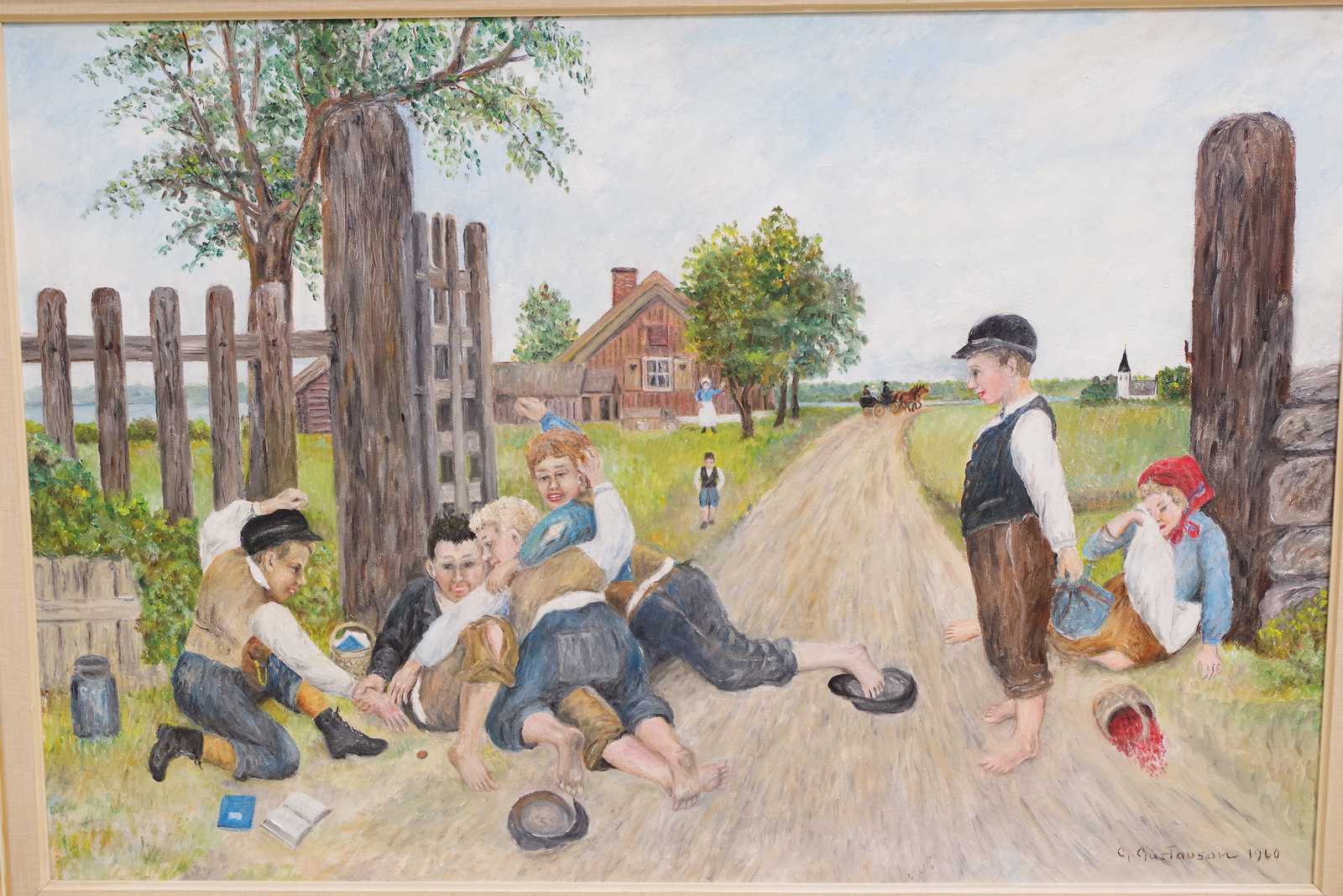 Bilder TAVLA, oidentifierad konstnär, olja på pannå, signerad. 89x61cm bildmått