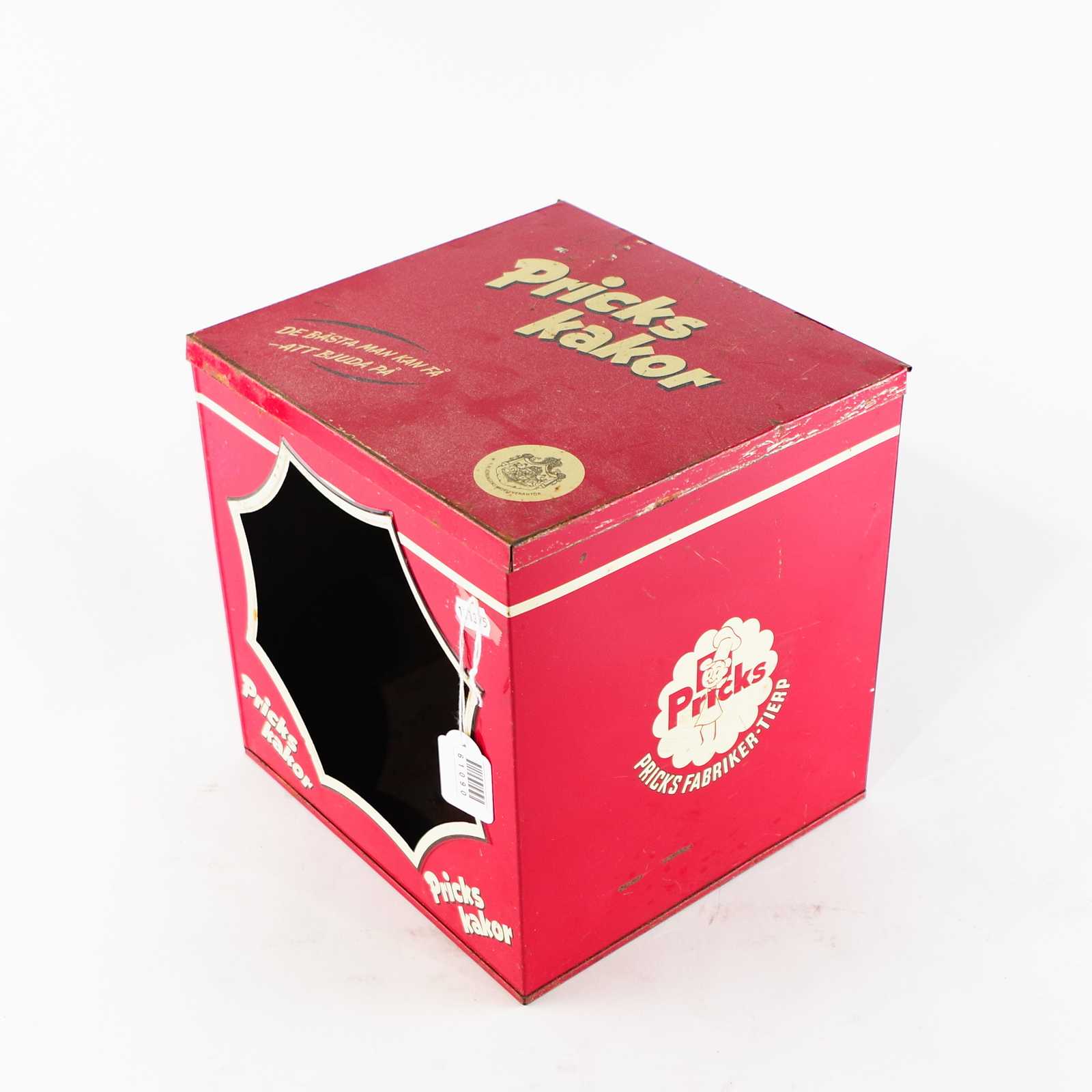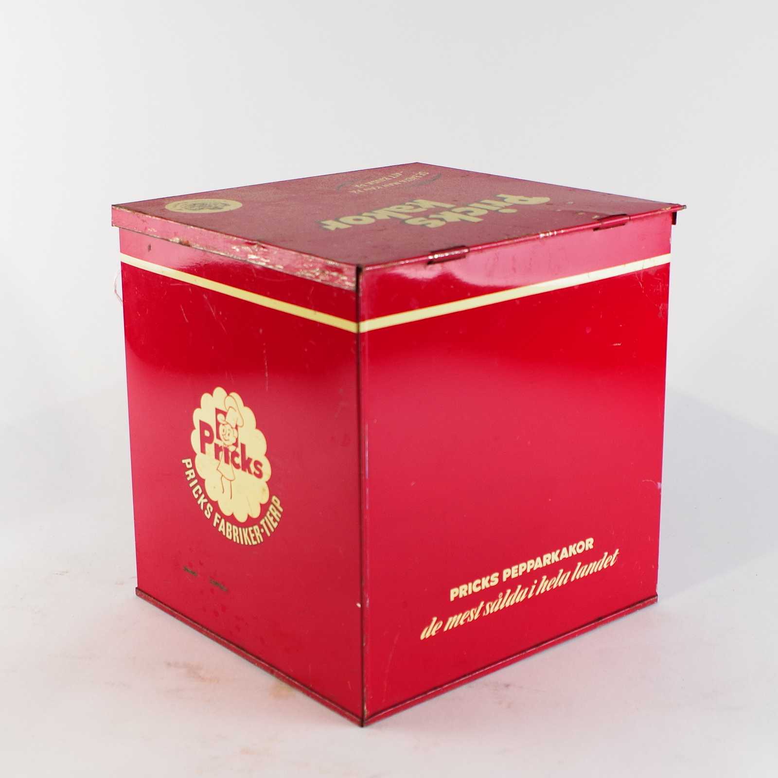 Bilder PLÅTBURK Pricks, 1900 talets första hälft. H:24x 23x 23cm. (glas i front saknas)