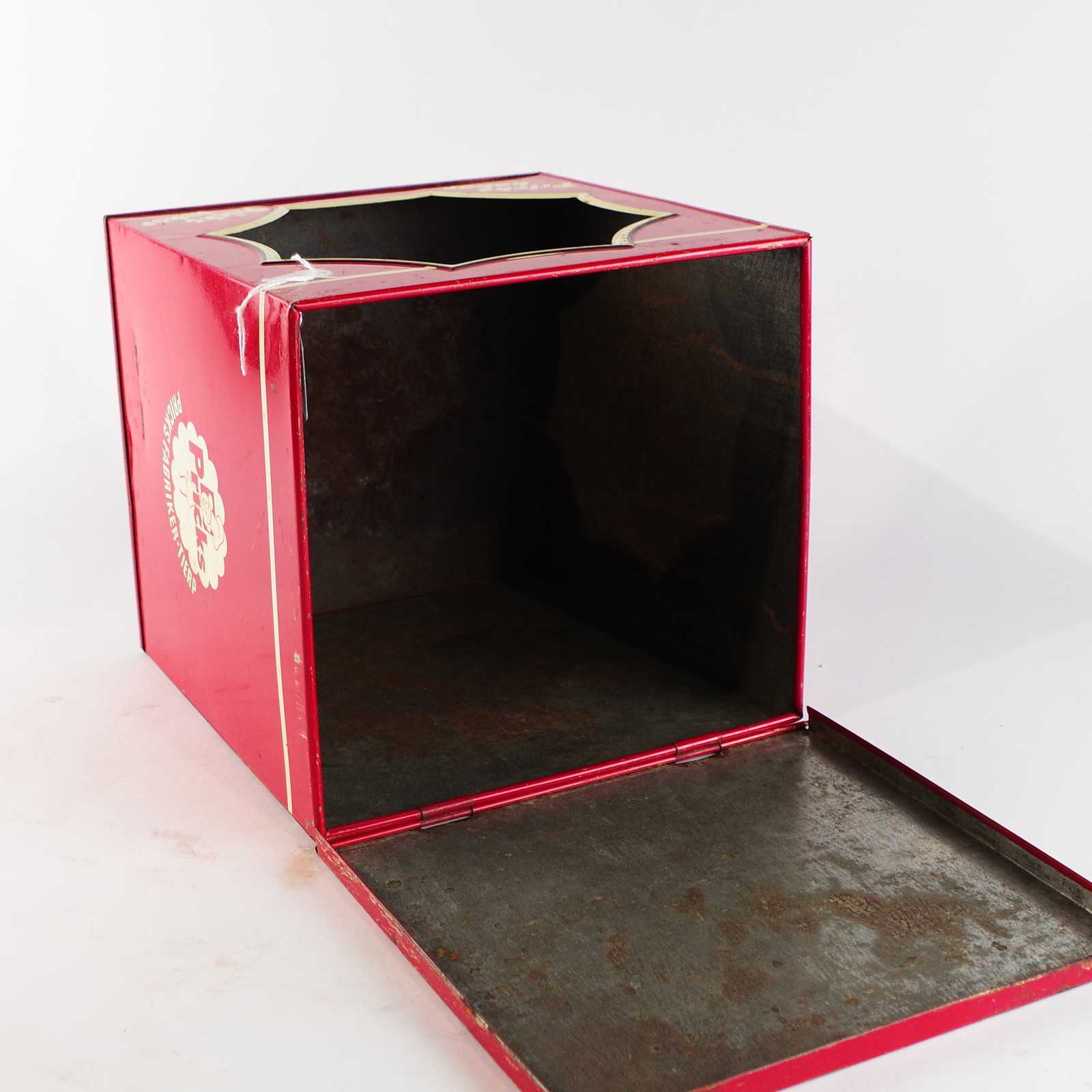 PLÅTBURK Pricks, 1900 talets första hälft. H:24x 23x 23cm. (glas i front saknas)