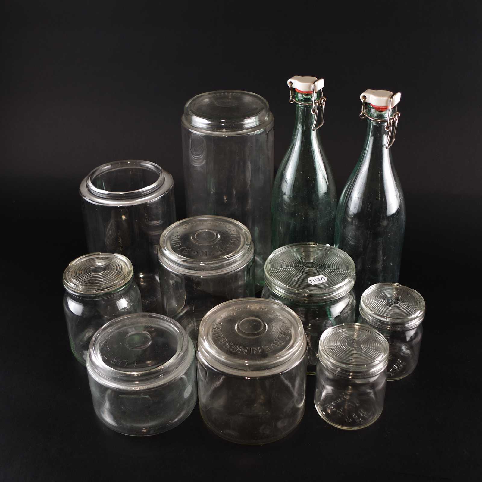 Parti GLASBURKAR & GLASFLASKOR äldre. H:30cm största.