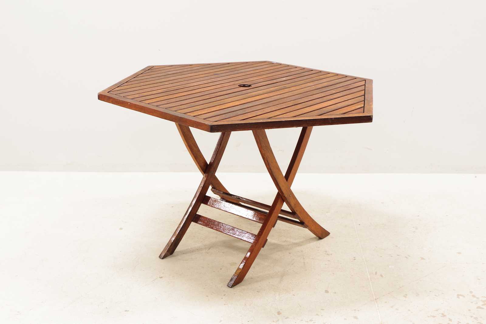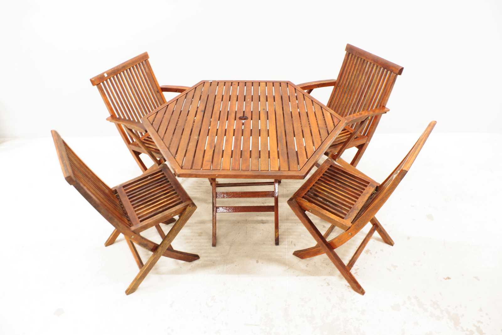TRÄDGÅRDSGRUPP hopvikbart, stolar paret, karmstolar paret & bord H:75cm D:105cm