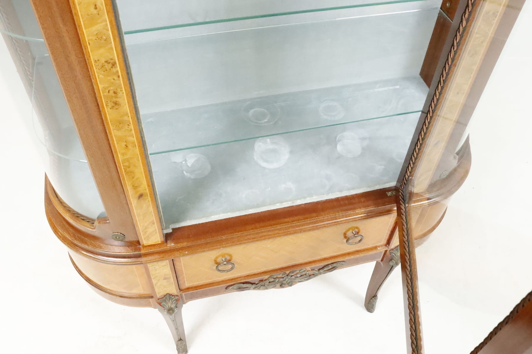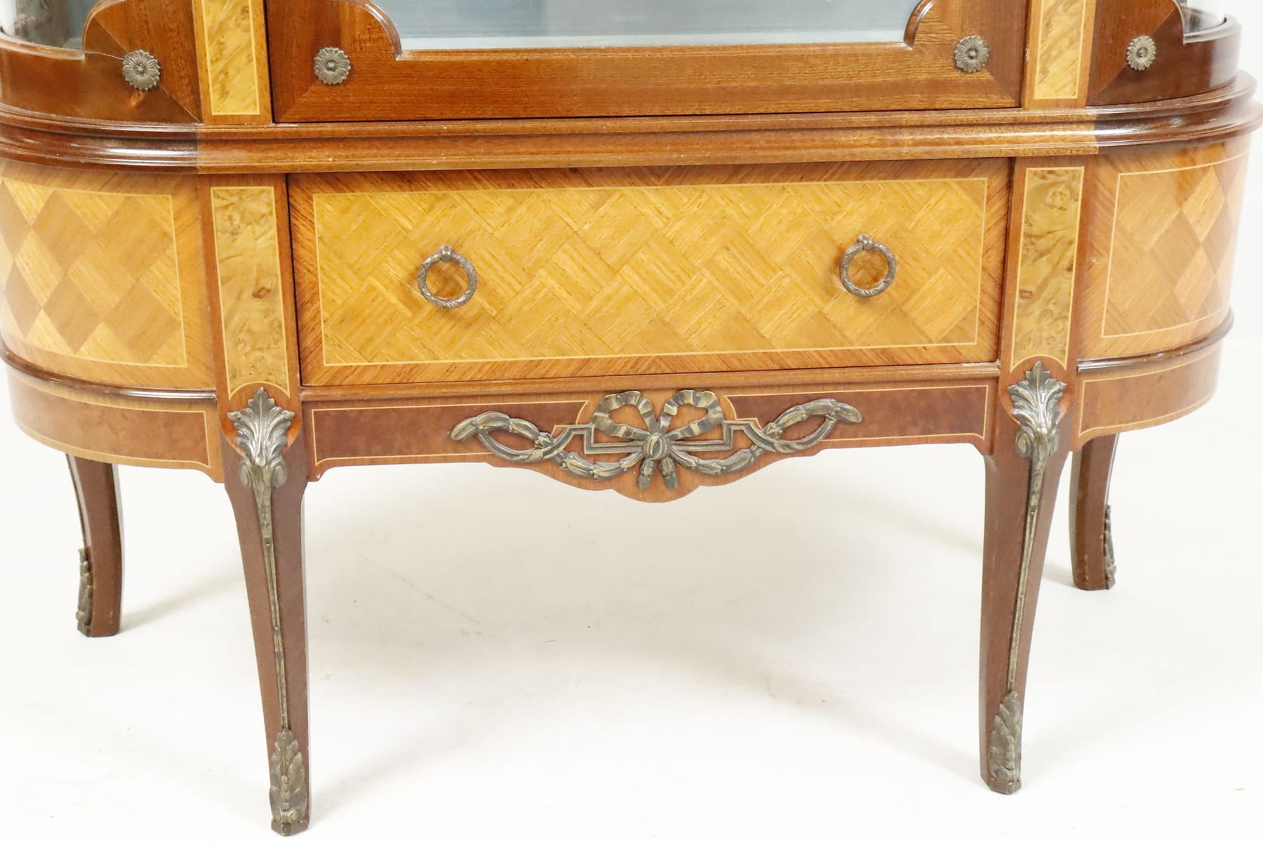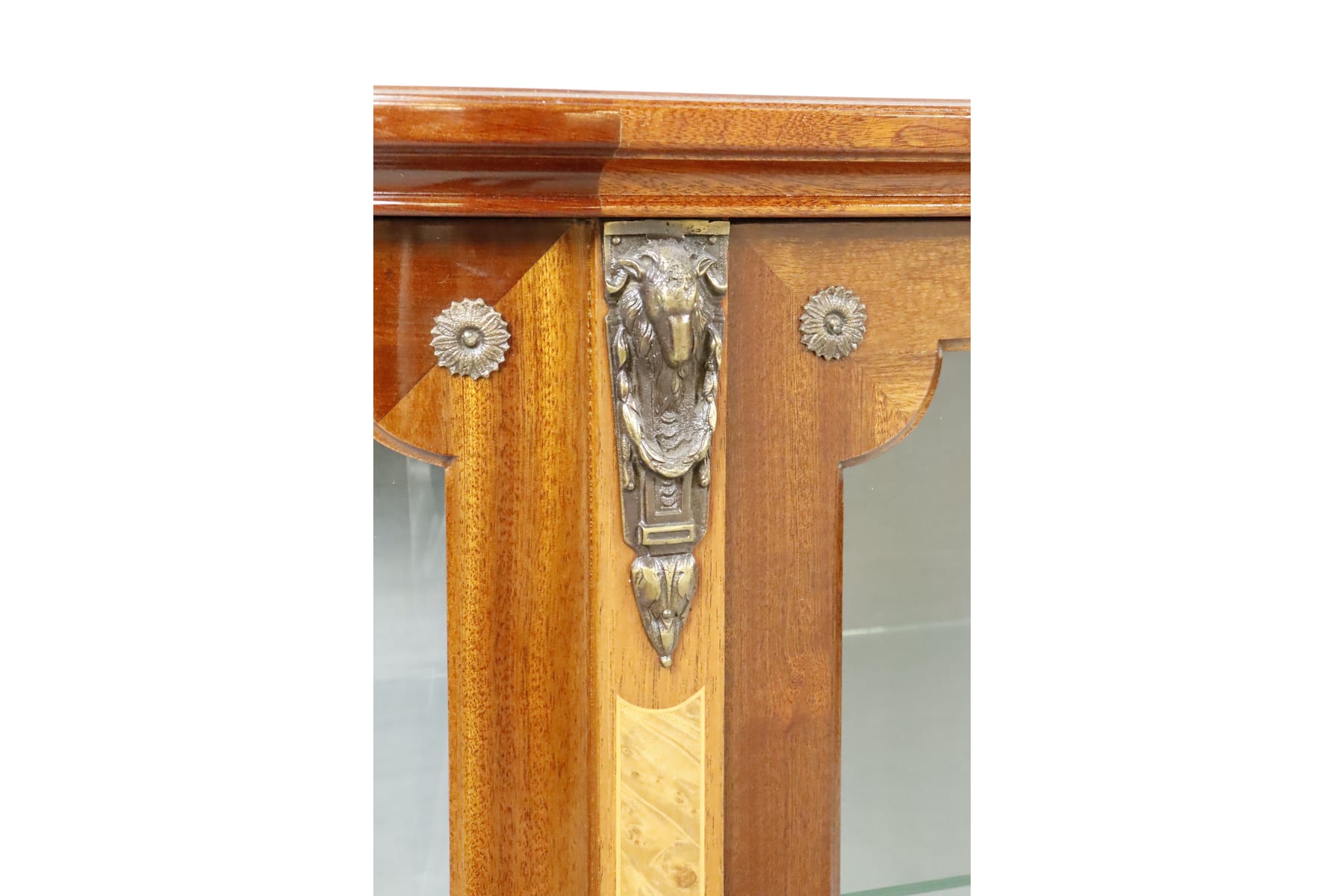 Vitrinskåp med intarsia och mässingsdetaljer