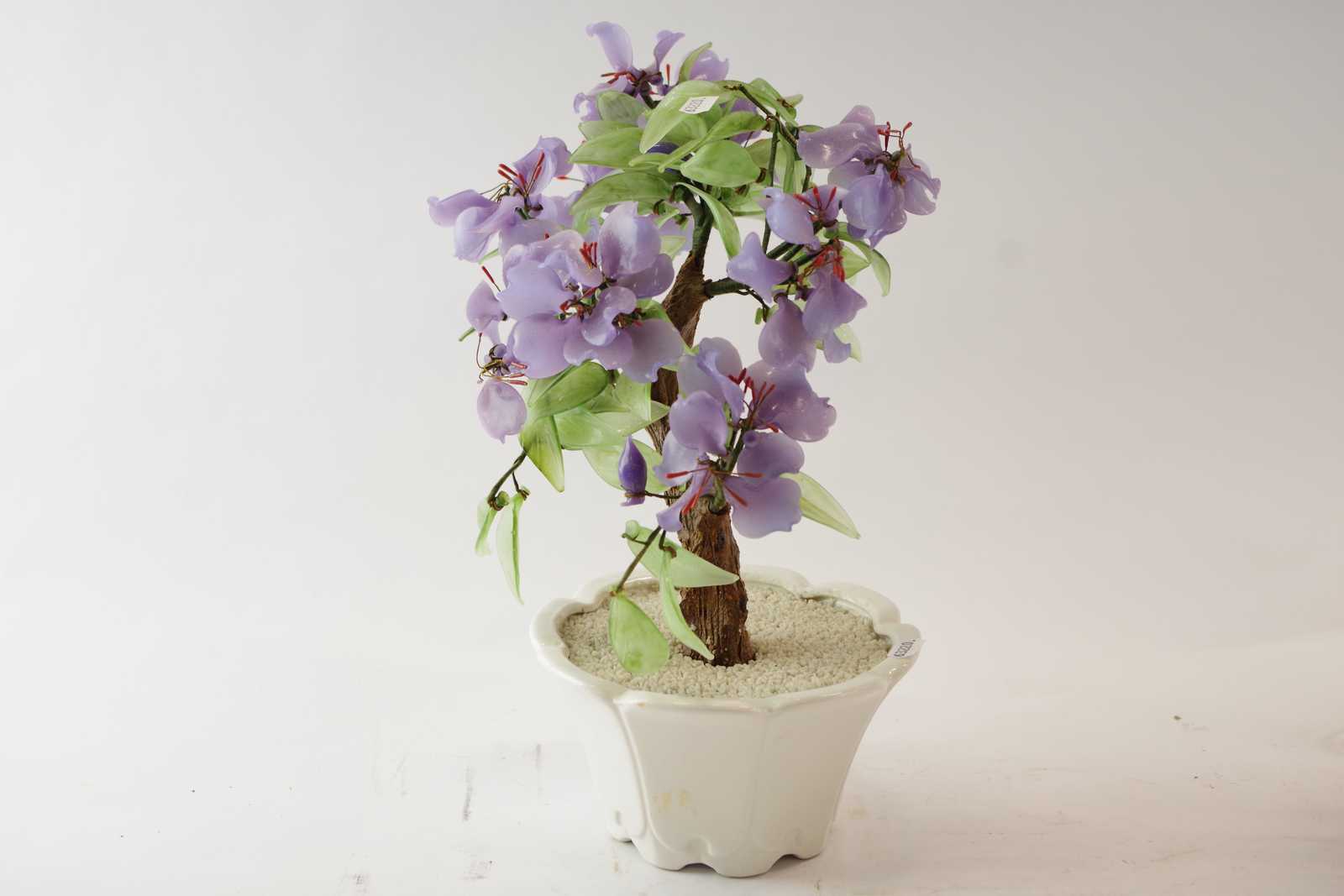 SNÄCKLAMPA/BORDSLAMPA & BONSAITRÄD glas/keramik H:32 cm