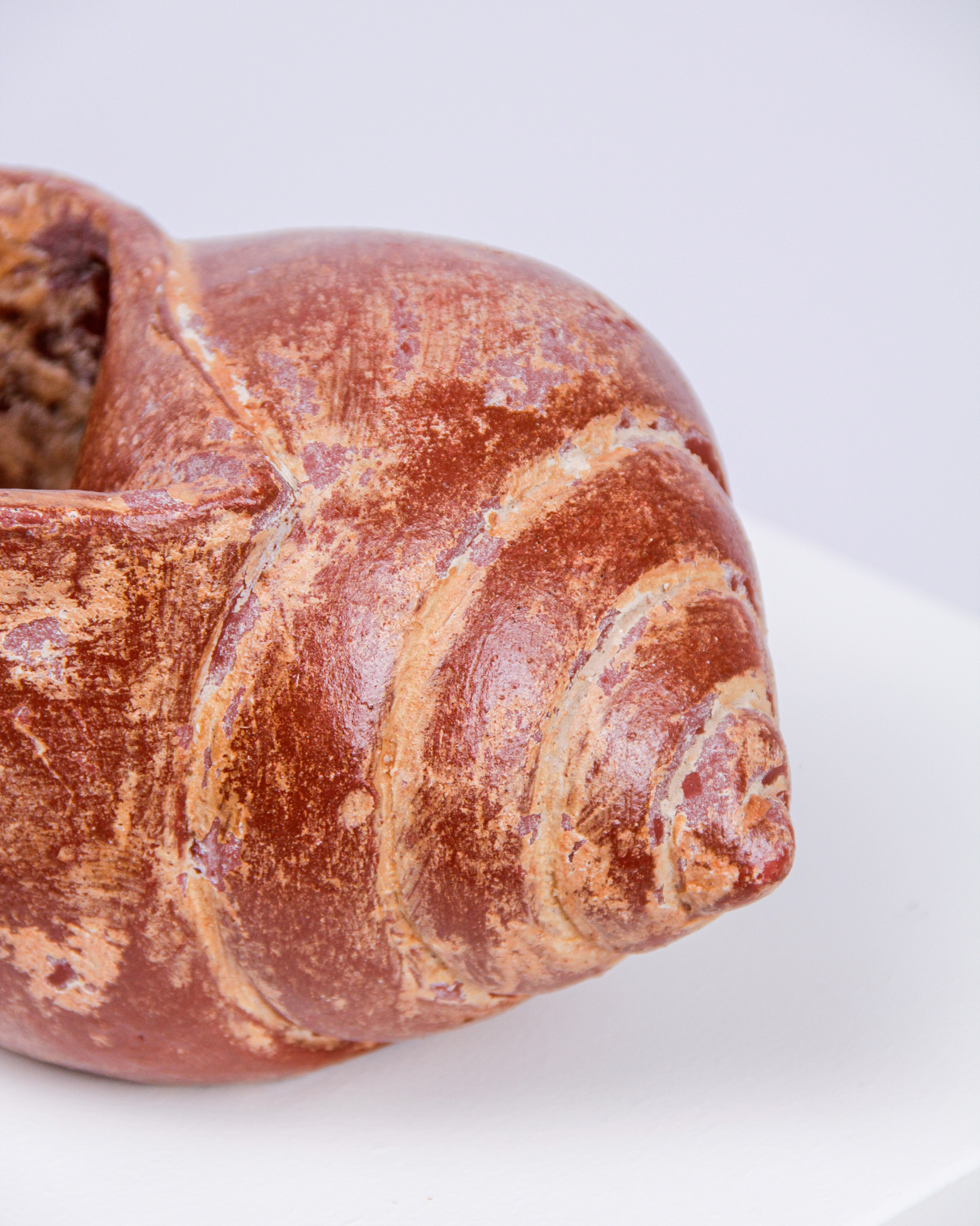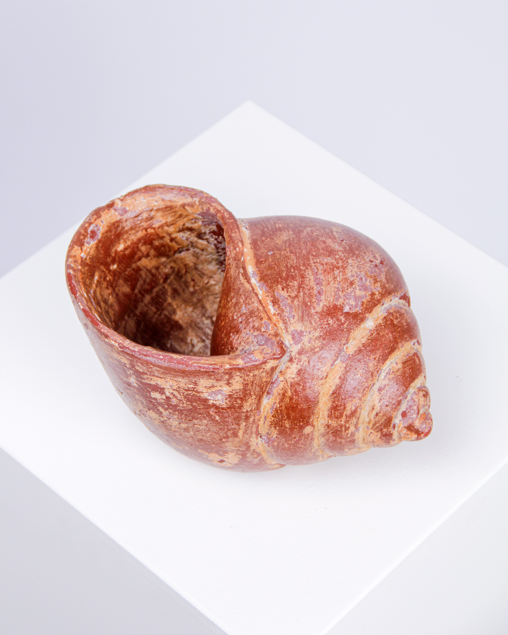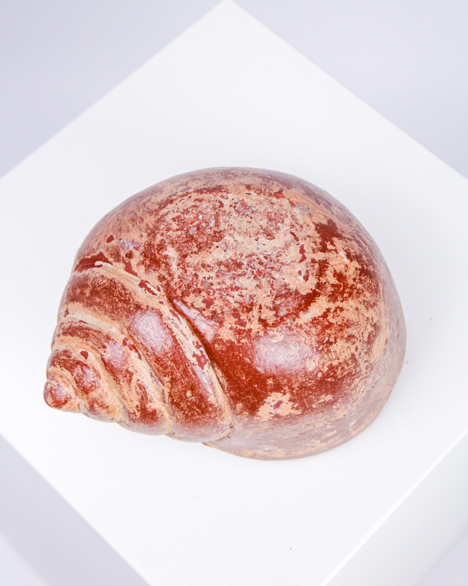 Skulptur/kärl i snäckform, glaserat lergods (keramiktema)