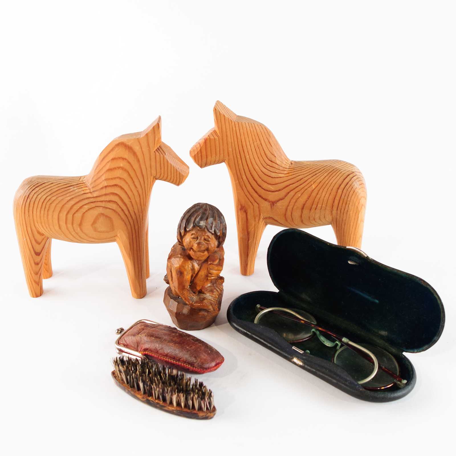 Bilder Parti TRÄTOLL signerat, TRÄHÄSTAR med mera. H:13cm hästar.
