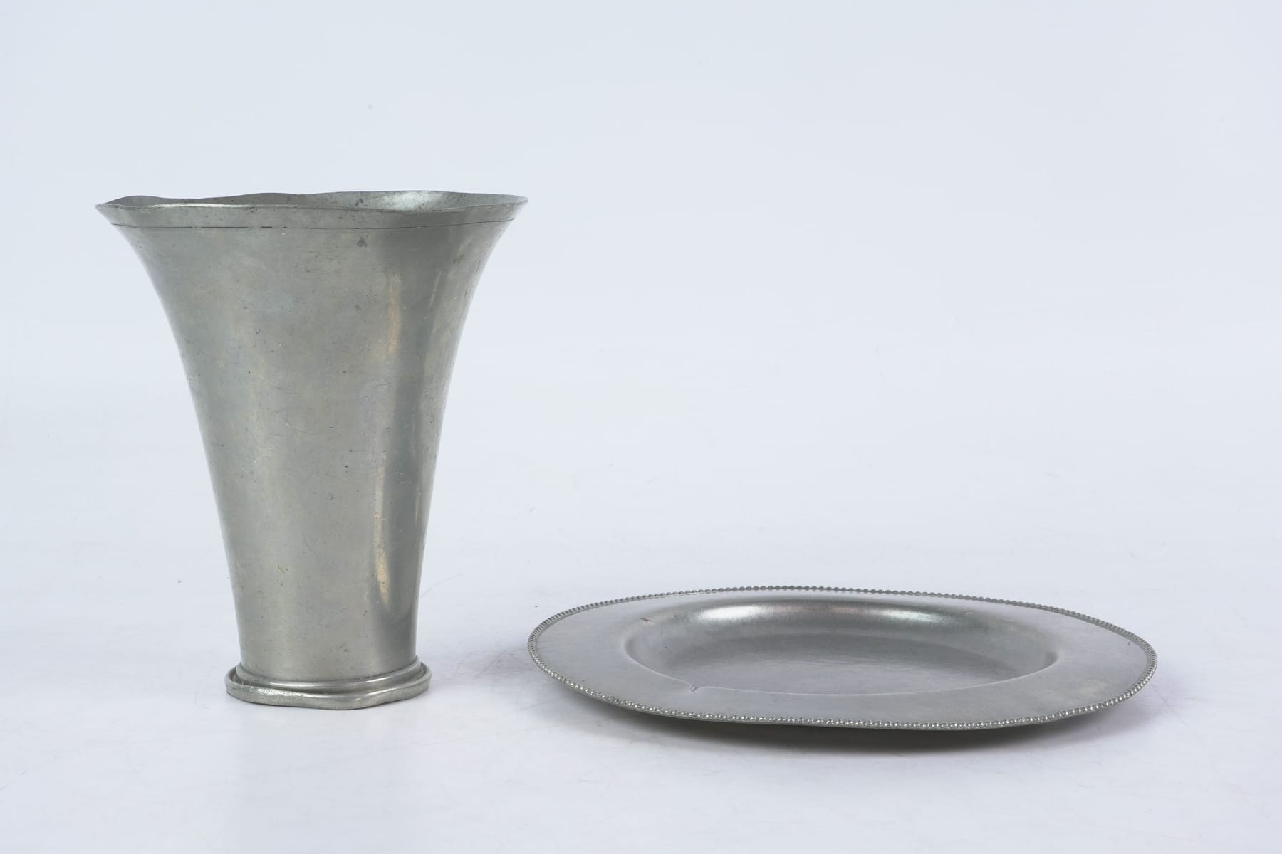 Bilder ASTRID AAGESEN, vas, samt JUST ANDERSEN, fat, tenn, Danmark, 1900-tal