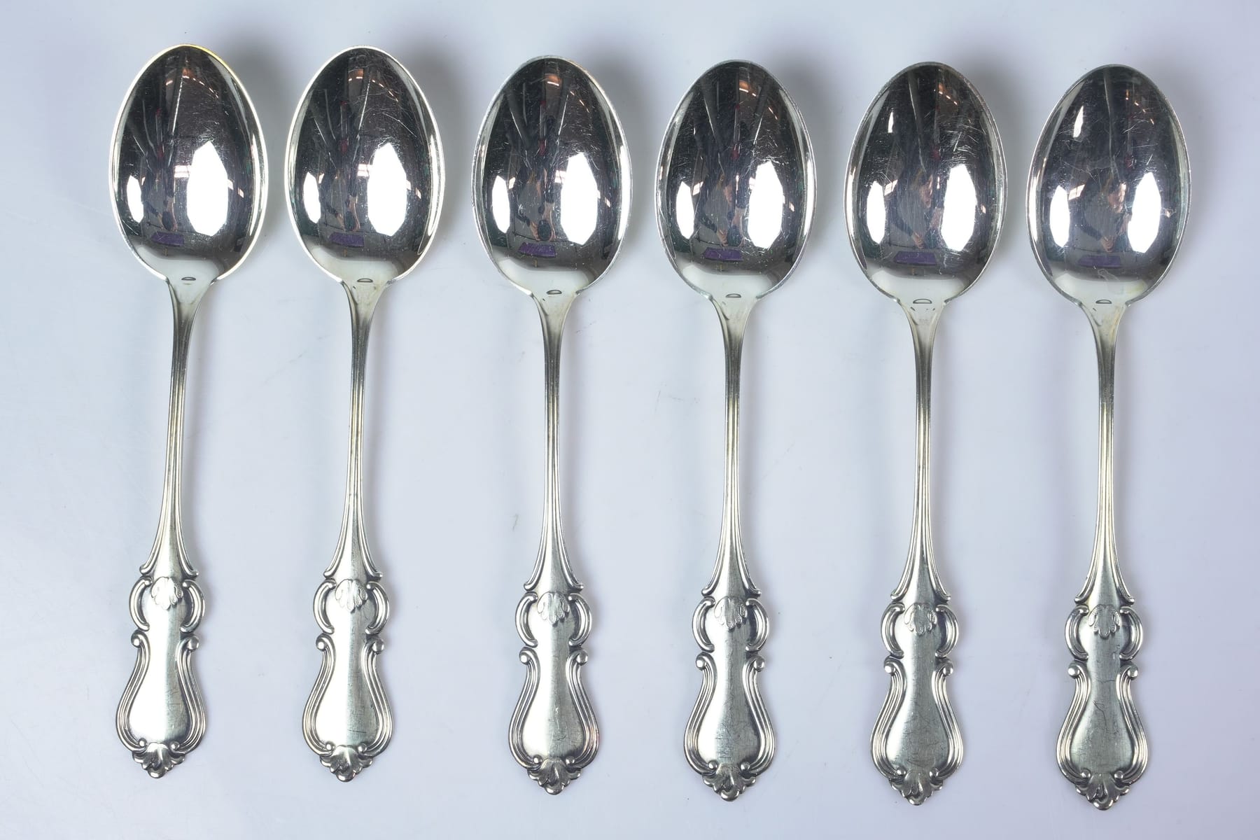 Bilder DESSERTSKEDAR, 6 st, silver, "Romantiikka", Kultakeskus Oy, Tavastehus, Finland, 1973, ca 145 g