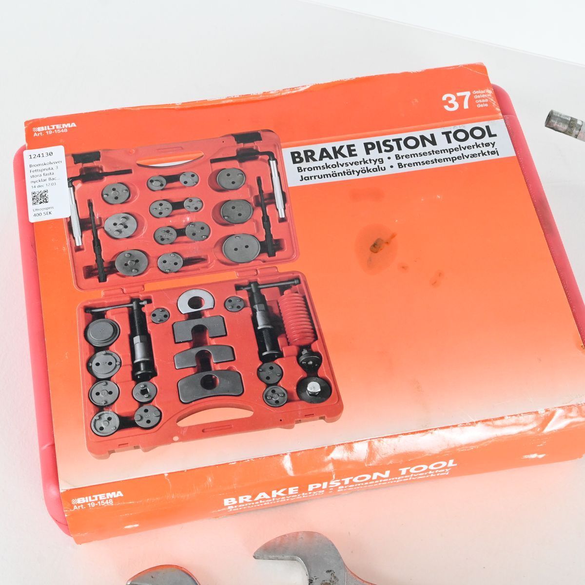 Bilder Bromskolvsverktyg, Fettspruta, 3 stora fasta nycklar Bacho mm