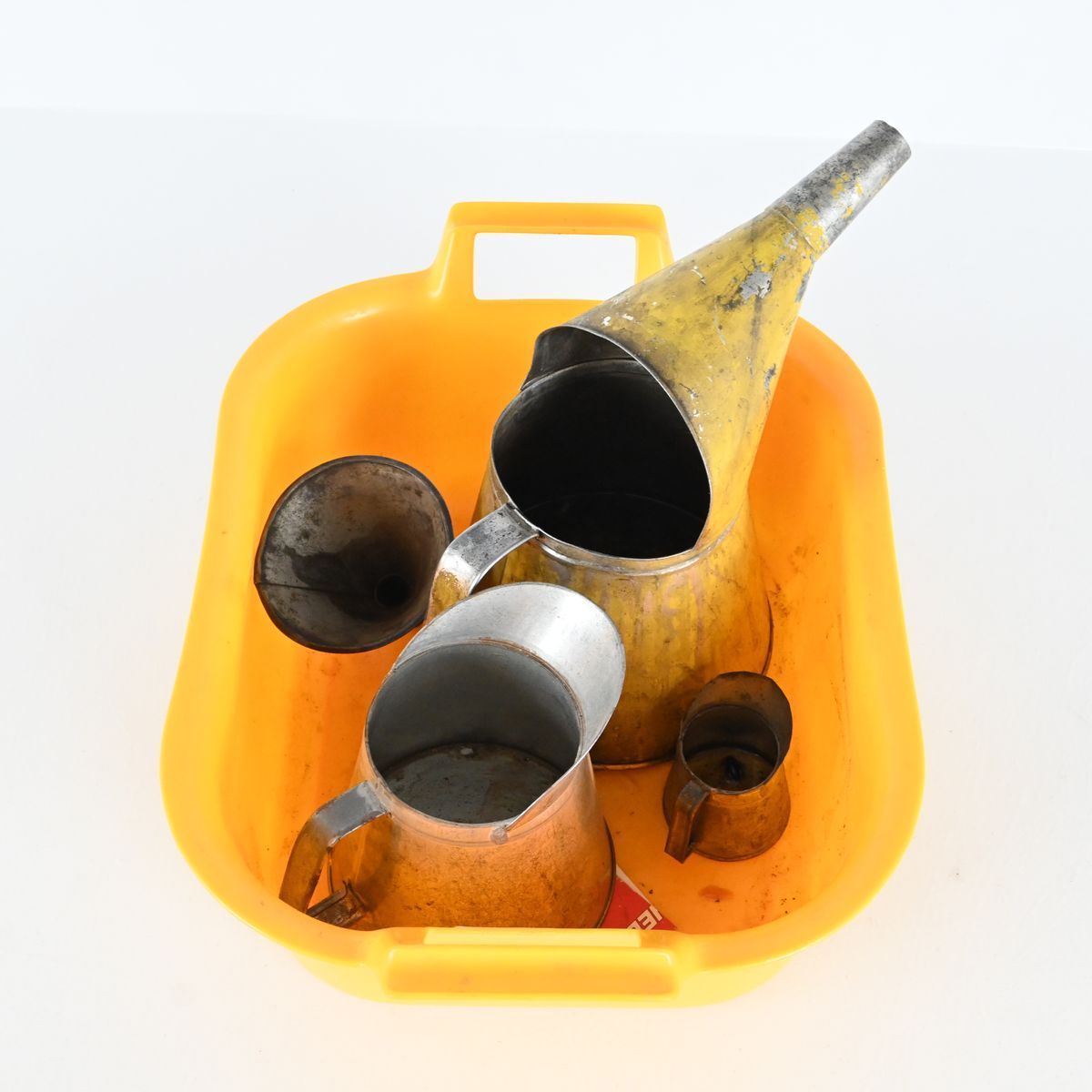 Bilder Parti oljekannor, kanna, tratt, plåt