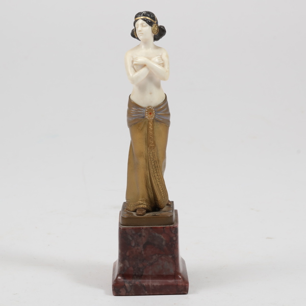 Föreställande Salome, brons samt ben, märkt B Grundmann FEE, höjd inkl stensockel 16,5 cm