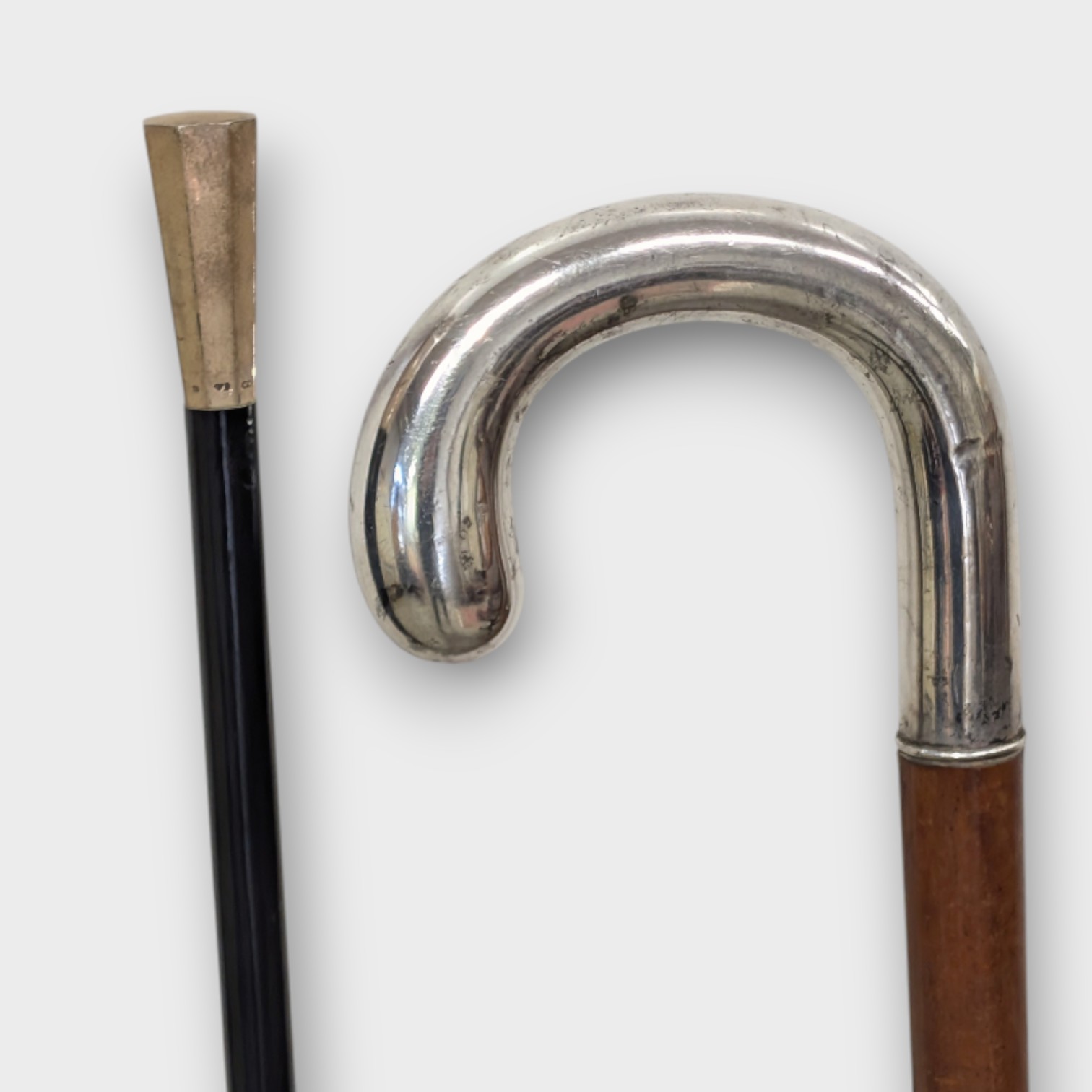 2 stycken käppar med silver handtag, den ena är graverad
