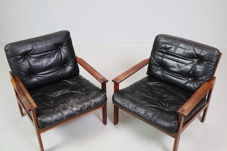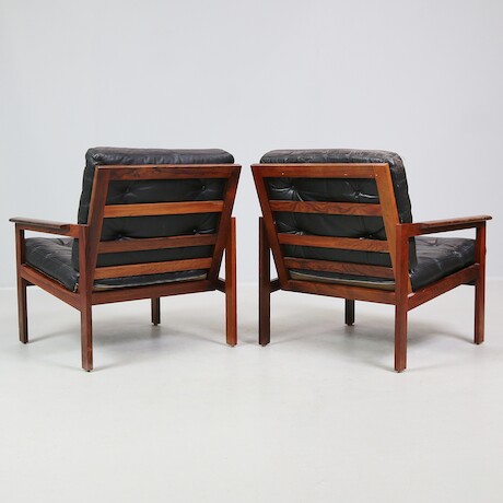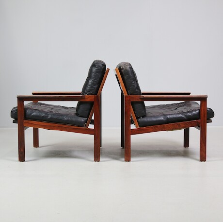 Bilder Illum Wikkelsö, fåtöljer ett par "Capella" Danmark, jakaranda & skinn